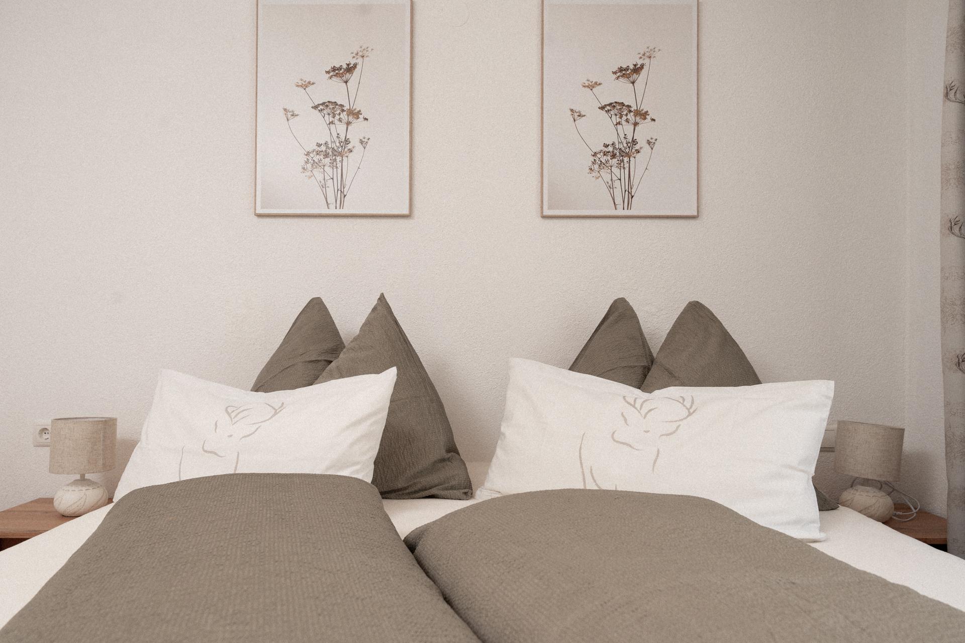 90 m² im 1. Stock bietet unser Appartement Frieda: Vorraum, Balkon, SAT-TV, 2 Doppelzimmer (eines davon mit Badezimmer mit Dusche/WC), 2 Dreibettzimmer, 2 separate Badezimmer mit Dusche/WC. Eine große, neu eingerichtete Wohnküche (Essplatz, Spülmaschine, E-Herd, Backrohr, Mikrowelle, Kühl-Gefrierkombination, Wasserkocher, ausreichend Geschirr, Töpfe uvm.).