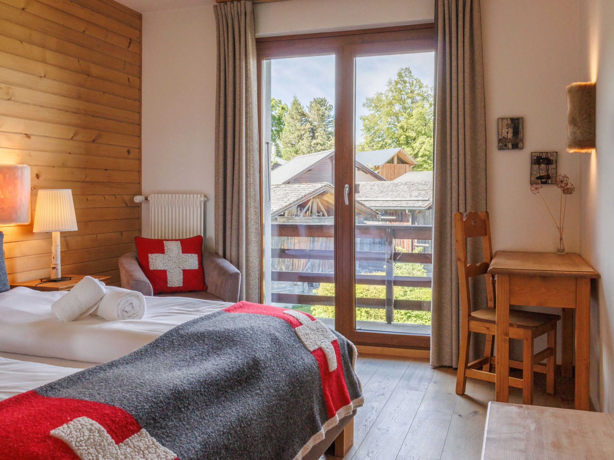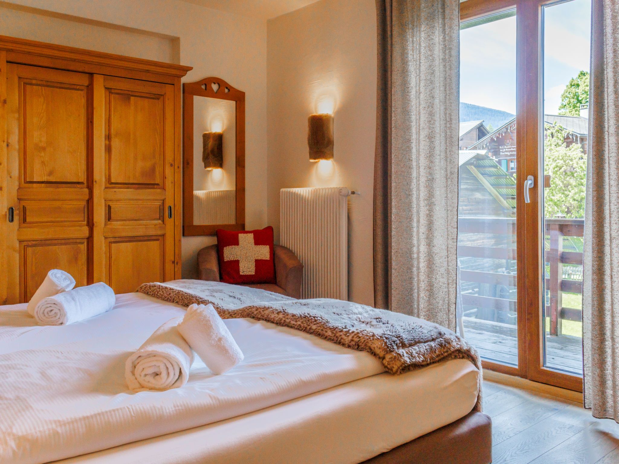 Victoria, 12-Zimmer-Chalet 850 m2 auf 3 Stockwerken. Komfortabel und stilvoll eingerichtet: Wohn-/Esszimmer mit offenem Kamin, Essecke und Bar. Ausgang zur Terrasse, zur Veranda. Grosse Küche (Backofen, Geschirrspüler, Toaster, Wasserkocher, Mikrowelle, Tiefkühler, elektrische Kaffeemaschine, Fondue Set (Chinoise, Käse)). Sep. WC. Obergeschoss: 5 Zimmer, jedes Zimmer mit 2 Betten (90 cm, Länge 200 cm), Dusche/WC. Ausgang zum Balkon. 1 Zimmer mit 2 Betten (90 cm, Länge 200 cm), Bad/WC. 1 Zimmer mit 1 Bett (90 cm, Länge 20 cm), Dusche/WC. Ausgang zum Balkon. 2. Obergeschoss: 3 Zimmer, jedes Zimmer mit 2 Betten (90 cm, Länge 200 cm), Dusche/WC. Ausgang zum Balkon. 2 Zimmer, jedes Zimmer mit 2 Betten (90 cm, Länge 200 cm), Dusche/WC. Ausgang zum Balkon. Terrasse 100 m2, grosser 300 m2. Terrassenmöbel. Sehr schöne Sicht auf die Berge und die Ortschaft. Zur Verfügung: Kinderhochstuhl, Babybett bis 3 Jahre, Haartrockner. Internet (WLAN, gratis). Bitte beachten: Nichtraucher-Unterkunft.