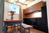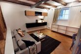 Die Wohnung ist offen und lichtdurchflutet gestaltet – ideal für alle, die es unkompliziert und familiär mögen. Im hinteren Teil befindet sich unser 240 cm breites maßgefertigtes Familienbett für bis zu vier Personen, das durch offene historische Holzbalken sanft vom Wohnbereich abgetrennt ist. Zusätzlich bietet eine bequeme Schlafcouch neben dem BettPlatz für zwei weitere Gäste. Im Wohnzimmer lässt sich noch ein Sofa zur Schlafcouch umbauen. Es gibt also Schlafplätze für sieben Personen.
