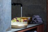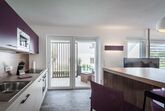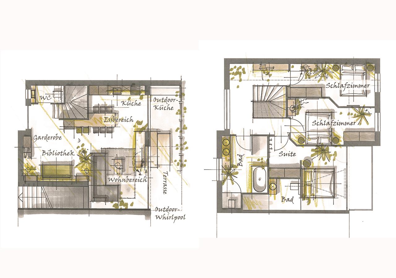 Das Erdgeschoss des Hauses Granit bietet einen sehr großzügigen, offenen Wohn-Essbereich. Die Küche setzt sich auf der Terrasse als Out-Door-Küche fort. Auch der Flat-Screen kann sowohl vom Wohnzimmer innen, als auch von der Terrasse aus genutzt werden.