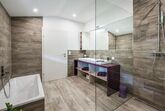 Das große Bad bietet eine Badewanne, eine Dusche und ein abgetrenntes WC. Die Suite im Obergeschoss verfügt über einen Ankleideraum, ein großes Doppelbett, einen Balkon und ein eigenes Bad mit Dusche und WC. Das Fernsehbild wird mittels eines Beamers auf eine Leinwand projiziert.