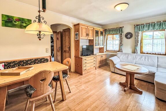Weißenbach bei Haus 2 km von Haus im Ennstal: Mehrfamilienhaus auf 2 Stockwerken. Im Ortsteil Weissenbach bei Haus, zentrale, sonnige Lage. Zur Mitbenutzung: kleiner Garten, Obstgarten. Tennis (2 x Hartbelag), Gartenmöbel. Im Hause: Wireless LAN, Einstellraum für Fahrräder, Skiraum, Zentralheizung. Parkplatz (überdacht) beim Haus. Supermarkt 3 km, Bäckerei 2.5 km, Café 100 m, Bushaltestelle 30 m, Bahnstation Haus im Ennstal 2 km, Badesee Aicher Badesee 2 km. Golfplatz (18 Loch) 4 km, Tennis 450 m, Reitstall 200 m, Radweg 50 m, Luftseilbahn 2 km, Skipisten 2 km, Skiverleih 2 km. Nahe gelegene Sehenswürdigkeiten: Dachstein Südwandbahn 20 km, Steirischer Bodensee 10 km, Zipline Stoderzinken 15 km. Bekannte Skigebiete sind gut erreichbar: Hauser Kaibling 2 km, Planai 9 km, Ramsau am Dachstein 10 km. Wandergebiete: Schladming 9 km, Ramsau am Dachstein 10 km, Gröbming 12 km. Hinweis: Ein Gartenhäuschen mit gemütlicher Sitzecke und Holzofen kann auf Anfrage beim Vermieter mitbenutzt werden. 2 Tennisplätze (250 m entfernt) können kostenlos mitbenutzt werden.