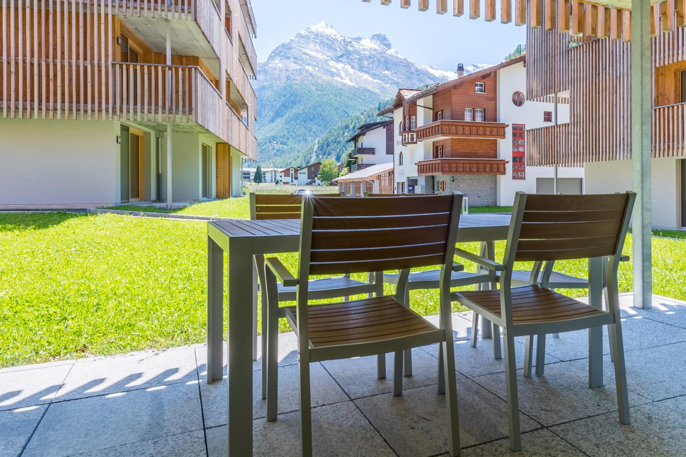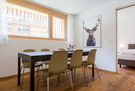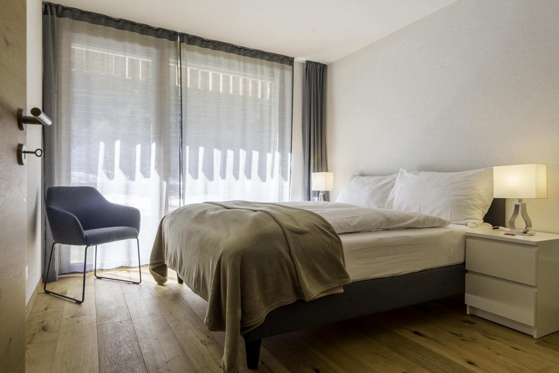 Das moderne Apartment mit 2 Schlafzimmern und 2 Badezimmern für 4-5 Personen ist komfortabel und liebevoll ausgestattet. Die zwei getrennten Schlafzimmer verfügen über je ein Doppelbett. Im Wohnbereich kann das Schlafsofa (140cm breit) zusätzlich für eine Person benutzt werden. Die zwei Badezimmer (mit DU/WC und Badewanne/WC) sowie die offene Küche sind komplett ausgestattet. Auf dem Aussensitzplatz mit Gartenmöbeln können Sie entspannt verweilen. Gratis top Highspeed-WLAN, ein eigener Parkplatz vor dem Haus (kostenlos), einen Ski- und Bikeraum mit eigenem, abschliessbarem Spint sowie eine Waschküche (kostenpflichtig) zur gemeinsamen Nutzung im Untergeschoss des Hauses runden das Angebot ab.