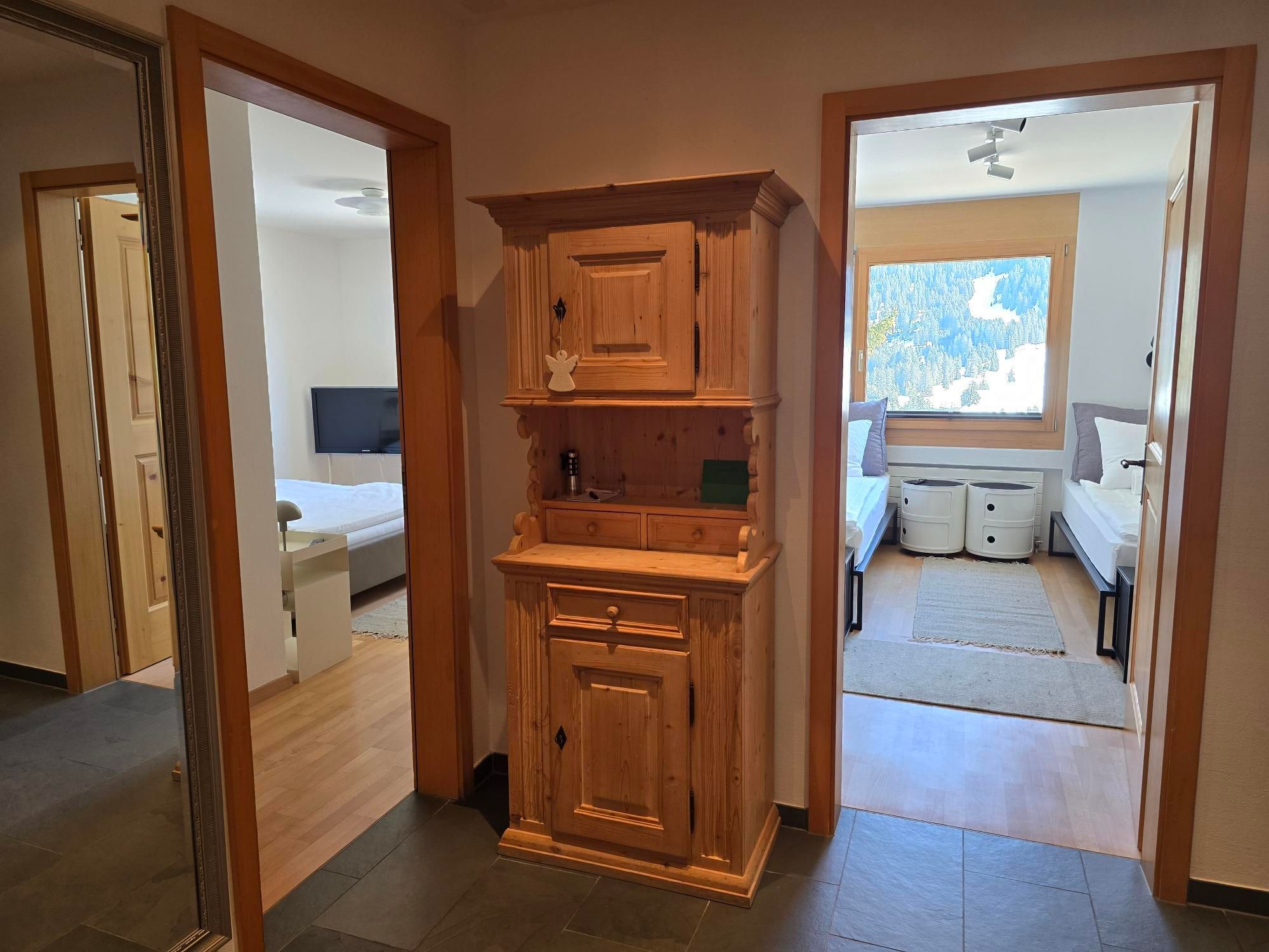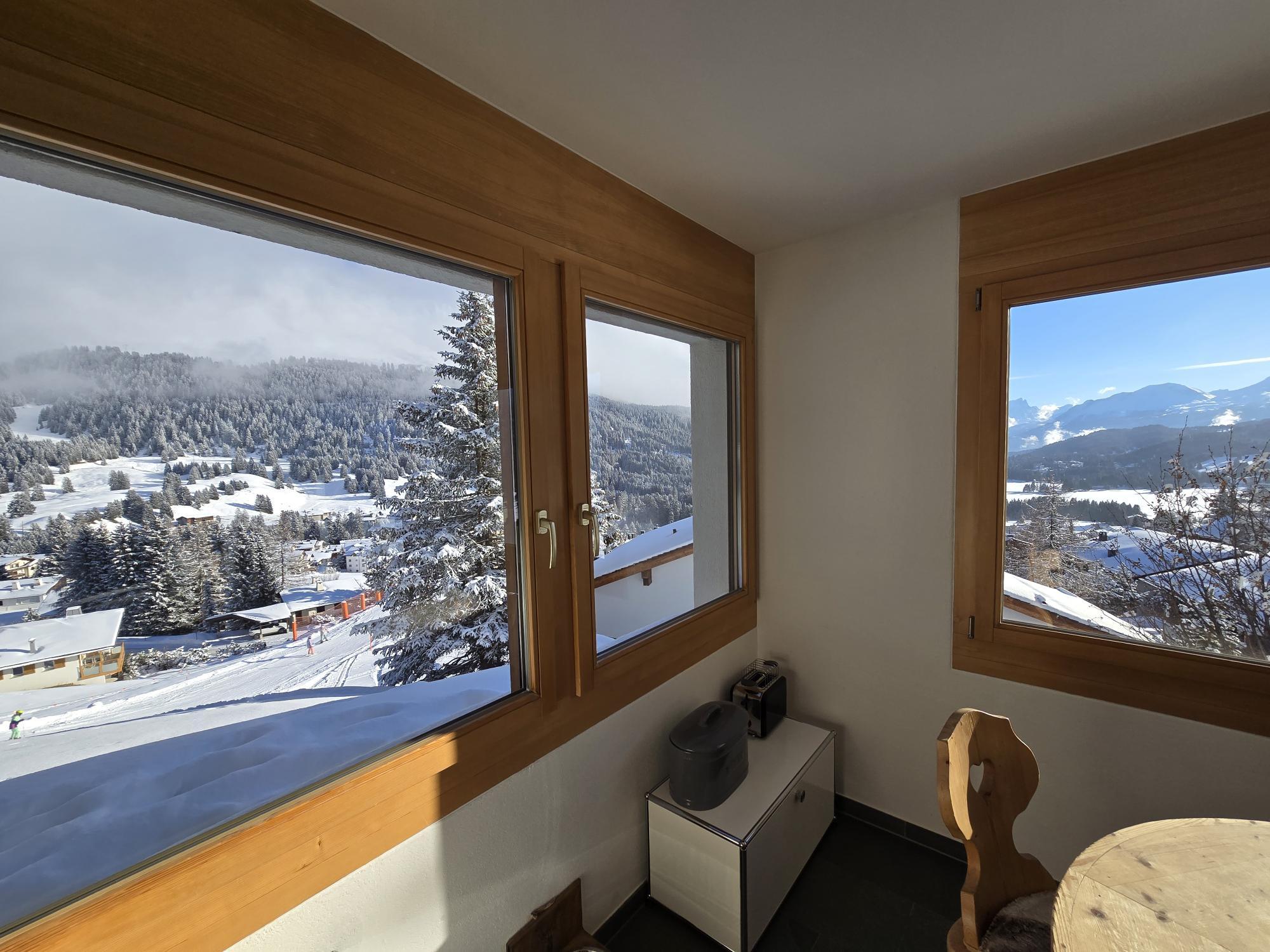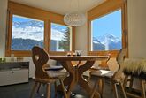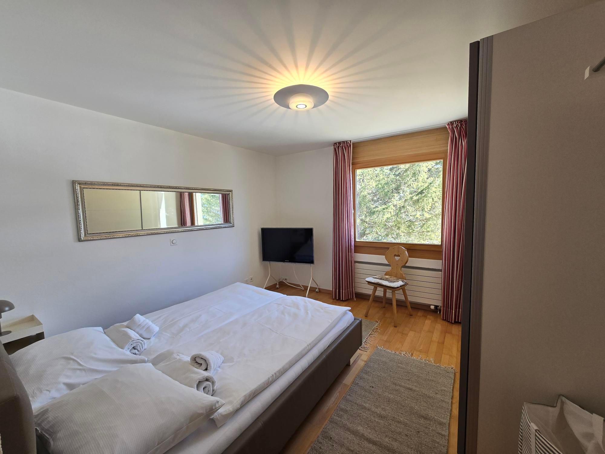 Diese wunderschöne 3.5 Ferienwohnung bietet höchsten Komfort und eine stilvolle Ausstattung. Das helle, geschmackvoll eingerichtete Wohnzimmer verfügt über einen direkten Zugang zum gedeckten Gartensitzplatz und schafft mit seiner grosszügigen Gestaltung sowie der atemberaubenden Aussicht eine gemütliche Atmosphäre zum Entspannen. Die offene, moderne Küche ist bestens ausgestattet. Die Wohnung verfügt über ein Schlafzimmer mit Doppelbett sowie ein weiteres Schlafzimmer mit zwei Einzelbetten. Zwei Badezimmer – eines mit Dusche/WC und eines mit Badewanne/Dusche/WC – sorgen für maximalen Komfort. Ein besonderes Highlight ist der grosszügige Gartensitzplatz mit Südausrichtung, der einen traumhaften Blick auf die beeindruckende Berglandschaft der Lenzerheide und den Heidsee bietet. Im Keller stehen ein Skiraum sowie eine Waschküche zur Mitbenutzung bereit. Zur Wohnung gehört ausserdem zwei geräumige Tiefgaragenparkplätze. Die Skipiste verläuft unmittelbar am Gebäude, was einen direkten Ski-in/Ski-out-Zugang ermöglicht – ideal für Wintersportbegeisterte.
