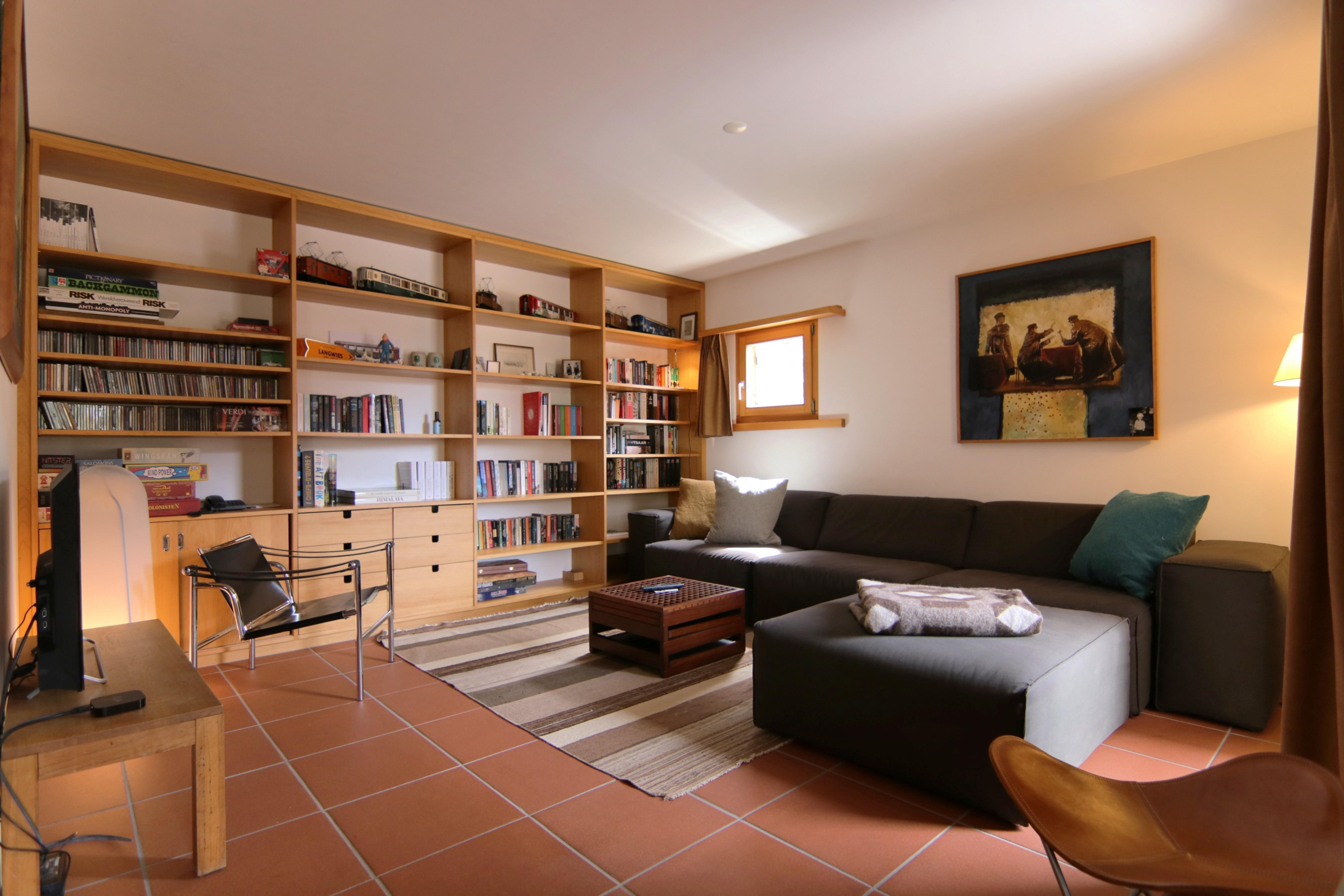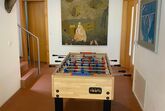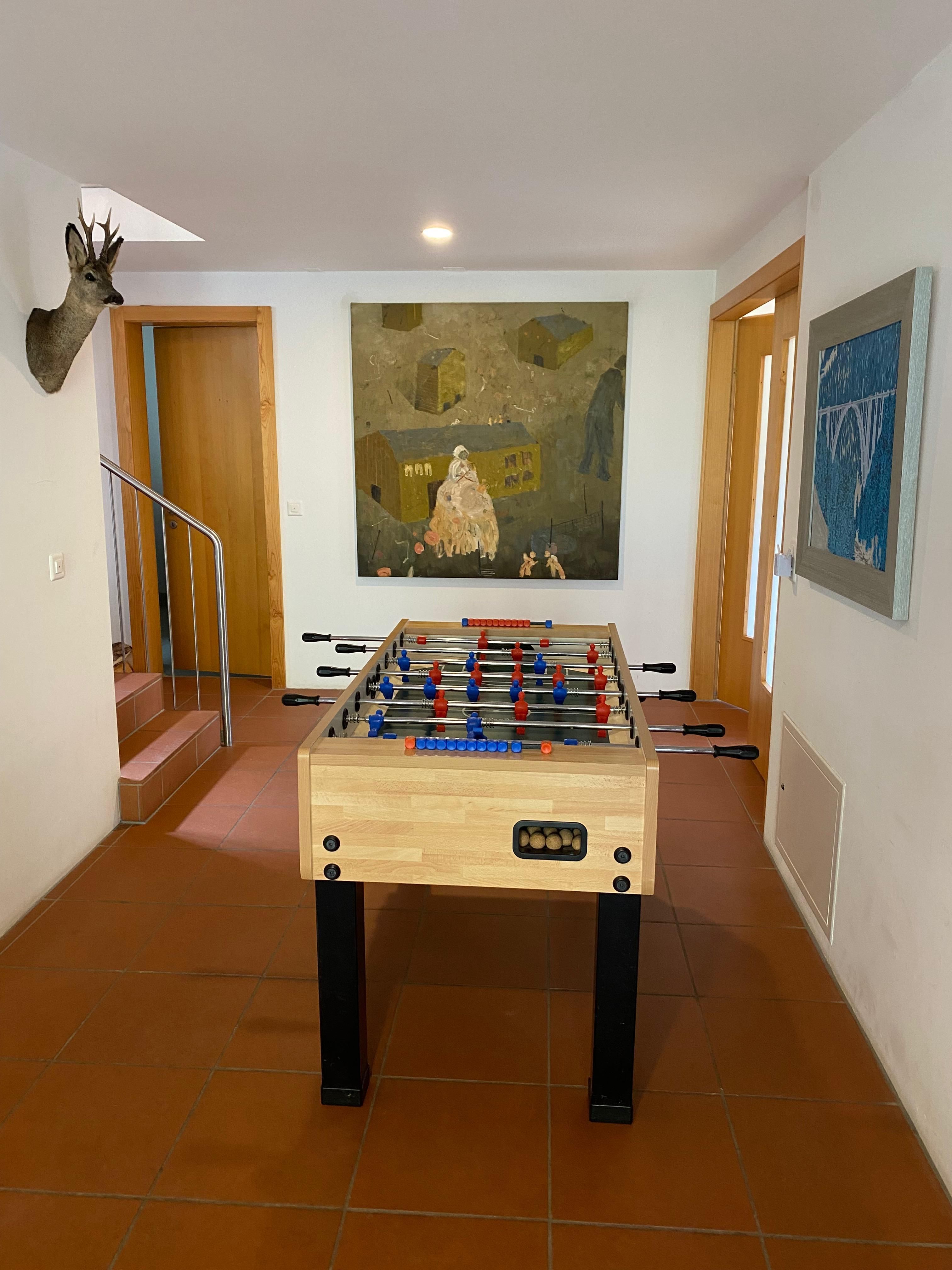 Das Highlight des Hauses ist die schlichte moderne Art gepaart mit der Ruhe der Natur. Und wem es doch zu langweilig wird, darf den Tischkicker im Eingangsbereich zum Leben erwecken.