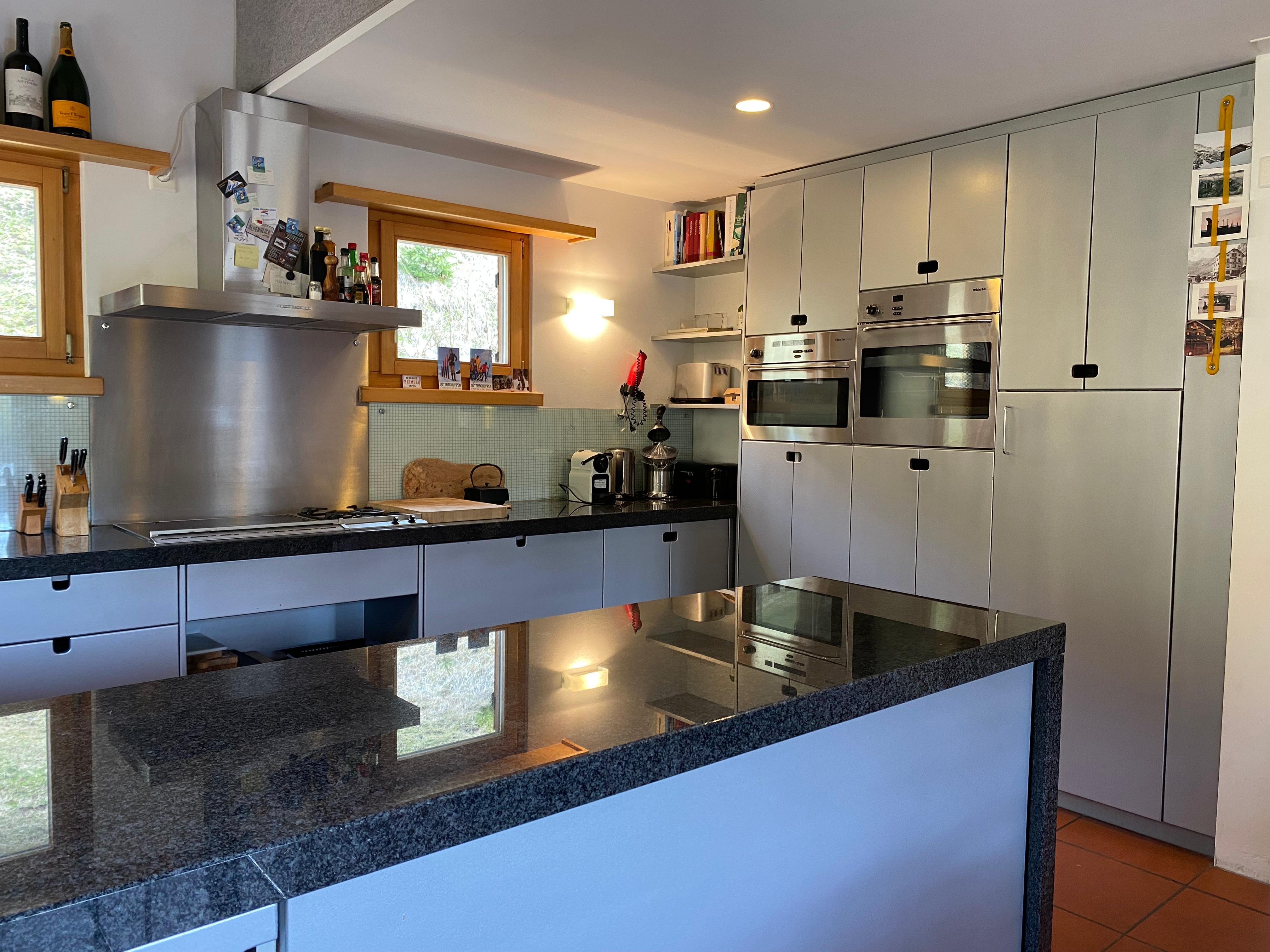 Im ersten Stock lädt ein riesiger Wohnbereich mit Kamin, Sonnenbalkon und offener Küche zum Verweilen und Geniessen ein. Im Dachgeschoss befinden sich 3 Schlafzimmer und 2 Bäder.