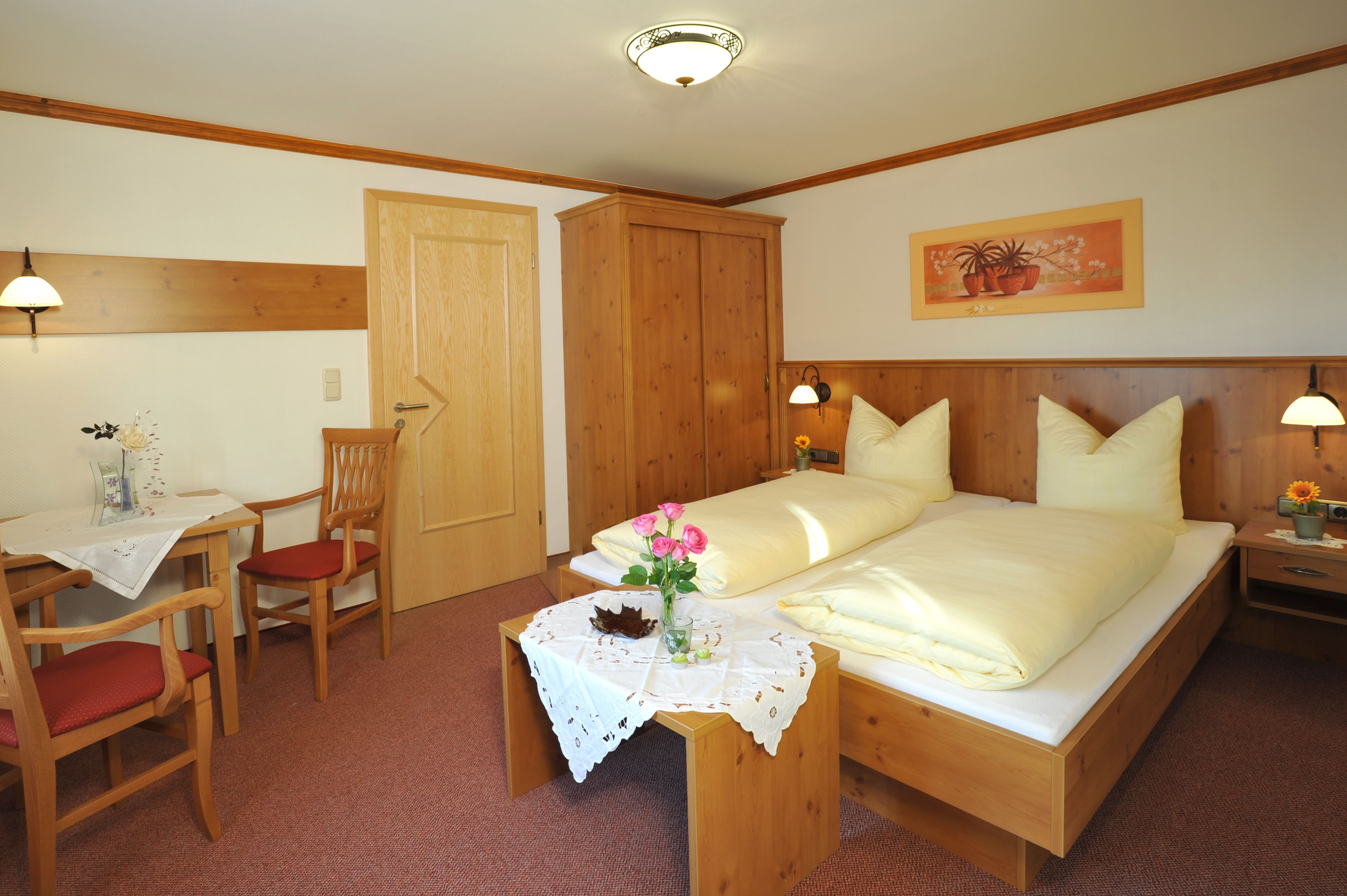 Unsere 2 gemütlichen Ferienwohnungen sowie unsere 3 Doppelzimmer mit Balkon laden zum Entspannen und Erholen ein.