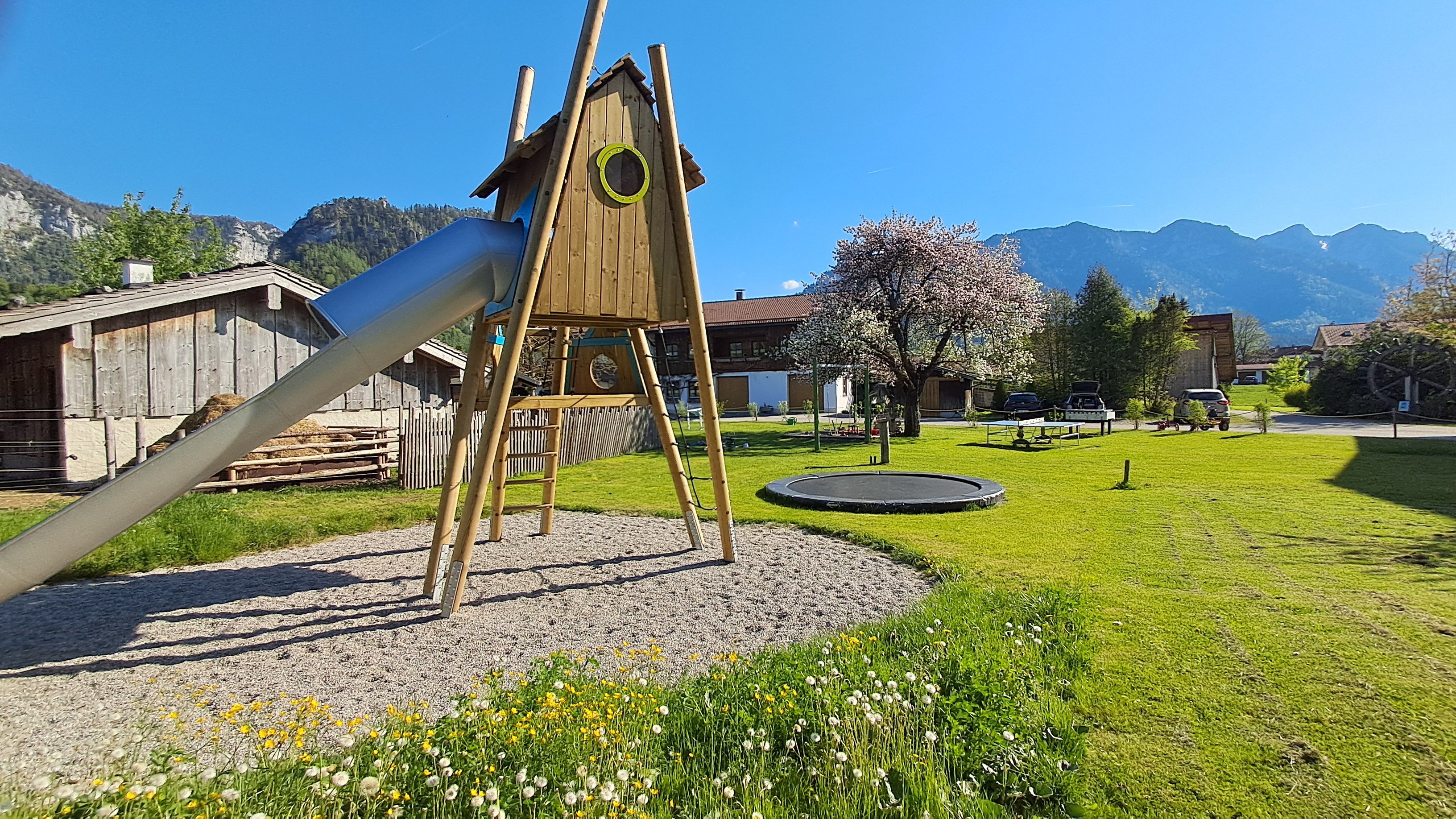 Der Erlebnishof Ödmühle liegt abseits von Verkehr und Lärm mit freiem Blick auf Wiesen und Berge. Wanderwege und Skiwanderloipen führen direkt am Haus vorbei. Eine großzügige Terrasse, Liegewiese und ein Kinderspielplatz (Indoor & Outdoor) tragen zur Erholung bei. Die Wohnungen sind im bayerischen Landhausstil eingerichtet. Ein kostenloser PKW-Stellplatz steht für jede Wohnung zur Verfügung. Ein traumhafter Inddoor-Spielplatz, zahlreiche Go-Karts und Tiere zum Streicheln sind natürlich auch da. Eine Besonderheit ist unsere Almhütte zum gemütlichen Beisammensein und zum Grillen. Auf Bestellung verwöhnen wir Sie gerne mit unserem Frühstückskorb. Diesen können Sie sich in Ihrer Ferienwohnung oder an Ihrem Lieblingsplatz auf unseren Außenanlagen schmecken lassen. Wir freuen uns auf Ihren Besuch. Ihre Familie Stadler