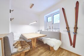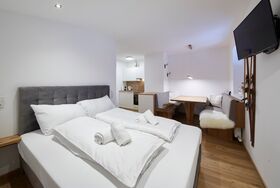 Unser Appartement Bergzeit stellt auf rund 25 m² eine kleine aber feine Unterkunft in ruhiger und doch zentraler Lage zwischen Saalbach und Hinterglemm dar. Die Wohnung bietet einen Wohnbereich mit Doppelbett, einem Essbereich, eine Küche sowie ein Badezimmer mit Dusche und WC. Ein Skiraum sowie ein Innenpool zur Gemeinschaftsnützung stehen unseren Gästen zur Verfügung. Ein kostenloser Parkplatz sind je nach Verfügbarkeit direkt hinter dem Gebäude vorhanden.