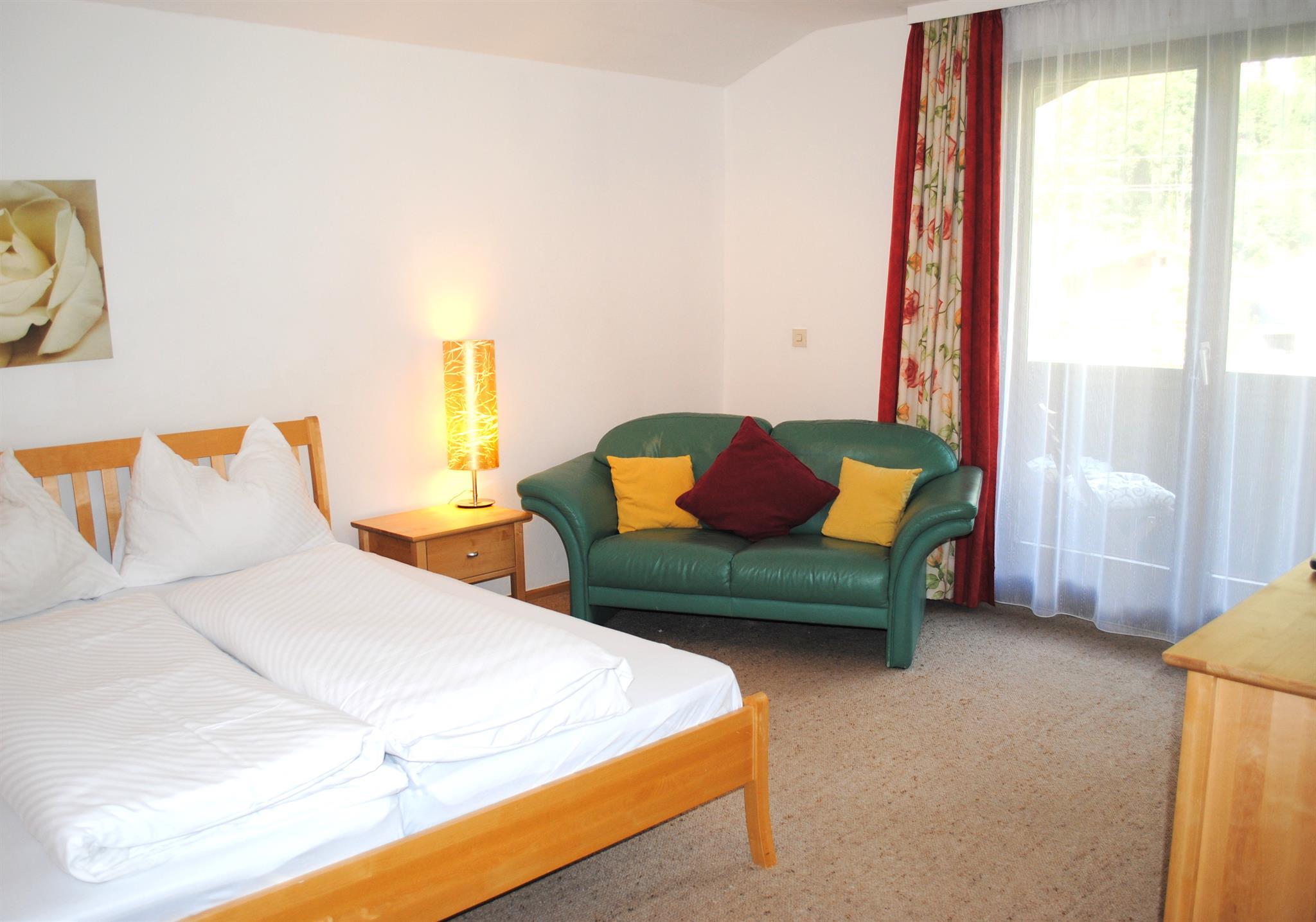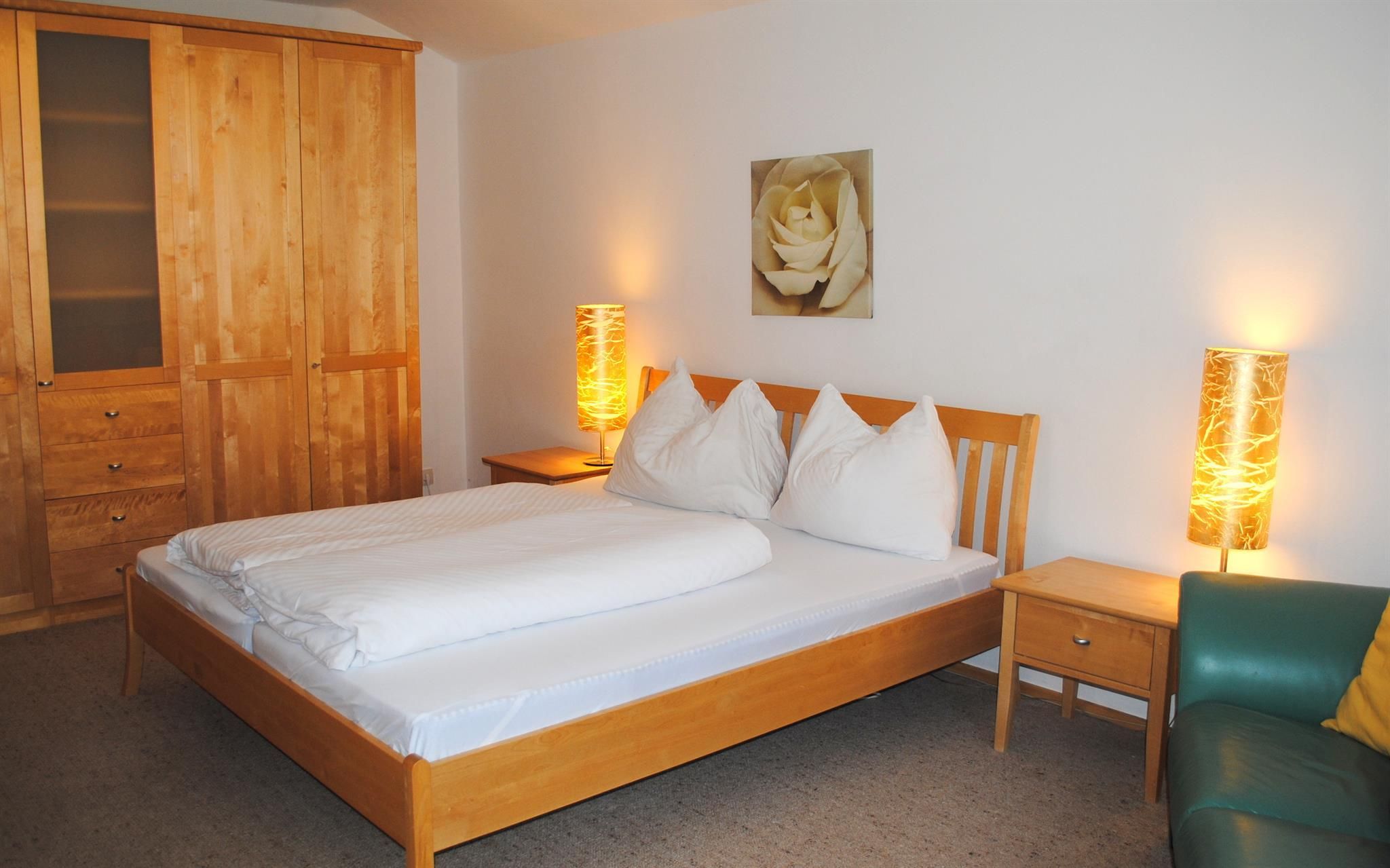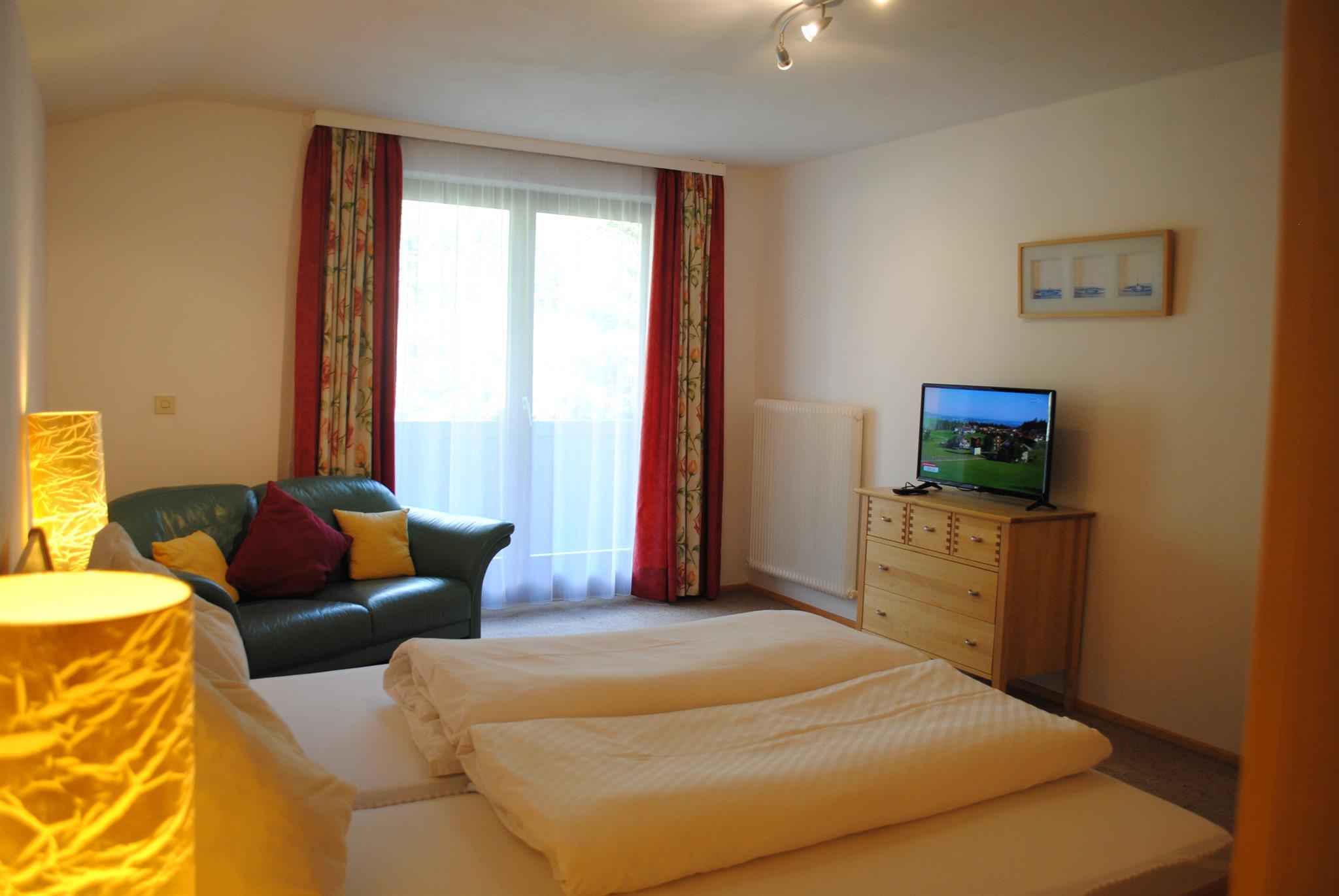 Die Ferienwohnung Rose ca. 40 m2: Ausstattung: verfügt über 1 Schlafzimmer (einmal mit Doppelbett, eine Wohnküche mit Küchenzeile mit Wasserkocher, Kaffemaschine, Tafel- und Kochgeschirr und E-Herd mit Backrohr. Sat TV, 1 Badezimmer mit Badewanne/Dusche und WC, sowie Haarföhn. Die Wohnung verfügt über 1 möbilierten Balkon!