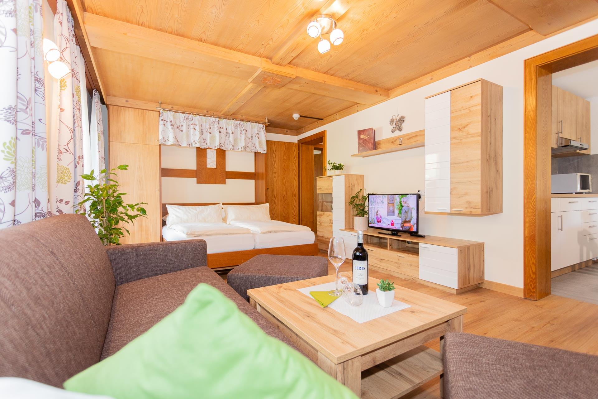 Appartement mit Bad und WC getrennt,Haarföhn, Balkon oder Terasse, Küche und Essecke eigener Raum, Wohnschlafraum und 1 Schlafräumen, Vorraum, Kabel-TV, Telefon, kostenloser WLAN.