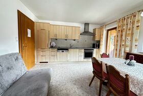 Typ B (75 m²): große komplett eingerichtete Wohnküche mit Bettcouch,