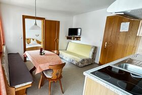Typ A (55 m²): große komplett eingerichtete Wohnküche mit Bettcouch, SAT-TV, Radio, 1 Schlafzimmer mit Doppelbett, 1 Schlafzimmer mit zwei Einzelbetten, großes Bad mit Badewanne und Dusche, WC extra. Diese Wohnung befindet sich im Parterre.