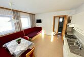 Typ A (55 m²): große komplett eingerichtete Wohnküche mit Bettcouch, SAT-TV, Radio, 1 Schlafzimmer mit Doppelbett, 1 Schlafzimmer mit 2 Einzelbetten , großes Bad mit Badewanne, Dusche, WC extra. Diese Wohnung befindet sich im Parterre.
