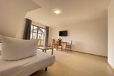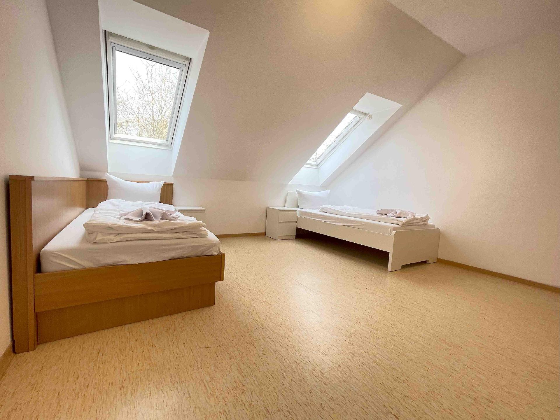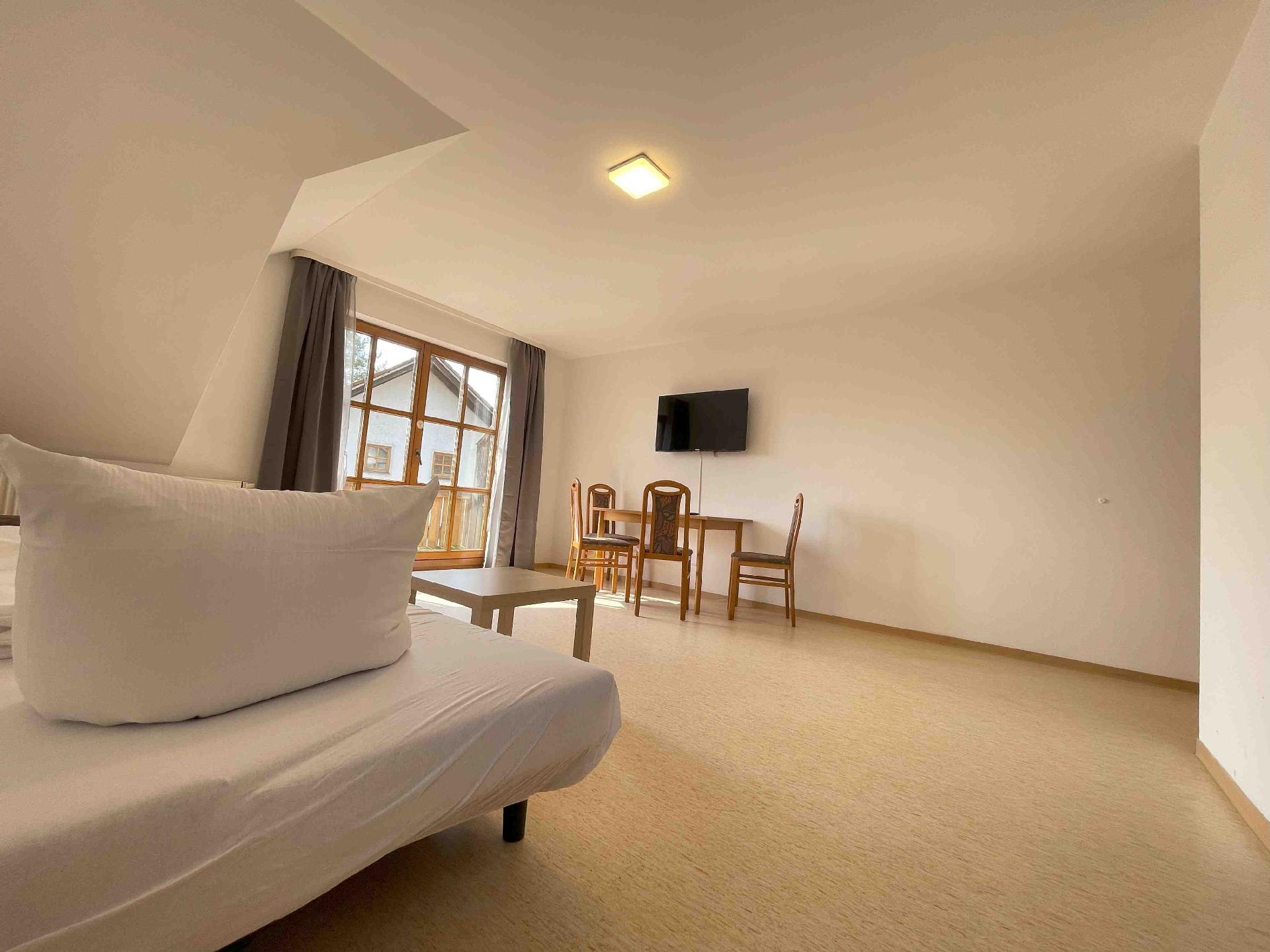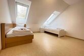 Die möblierte 65 m² große Dachgeschosswohnung in Stamsried umfasst zwei Schlafzimmer mit jeweils zwei Einzelbetten und ist für bis zu vier Personen geeignet. Es besteht die Möglichkeit, dass eine fünfte Person auf dem Sofa schläft.
