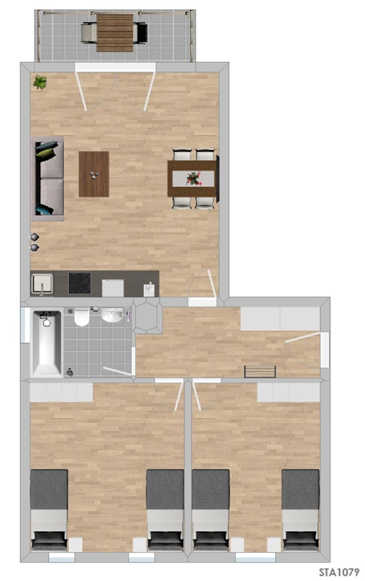 Auf dem Grundriss der Unterkunft können Sie die genaue Zimmer- und Bettenaufteilung sehen.