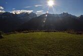 Ein separater Eingang an der Seite des Hauses führt in die Garderobe. Von hier aus gelangen Sie direkt in die Ferienwohnung (Türe links) oder geradeaus in den Waschkeller und den Skiabstellraum, die auch den Gästen der oberen Wohnung zur Verfügung stehen.