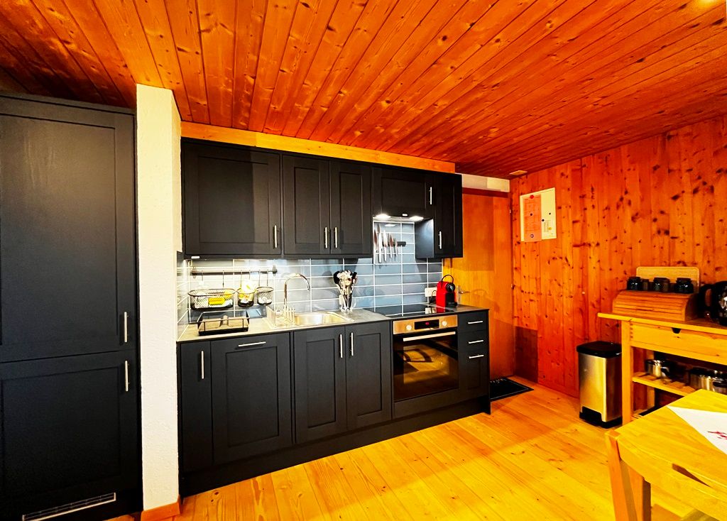Die moderne, gut ausgestattete Küche lässt keine Wünsche offen: Sie verfügt über einen Backofen, Kühl- und Gefrierschrank sowie eine Nespresso-Kaffeemaschine (bitte bringen Sie Ihre eigenen Kapseln mit).
