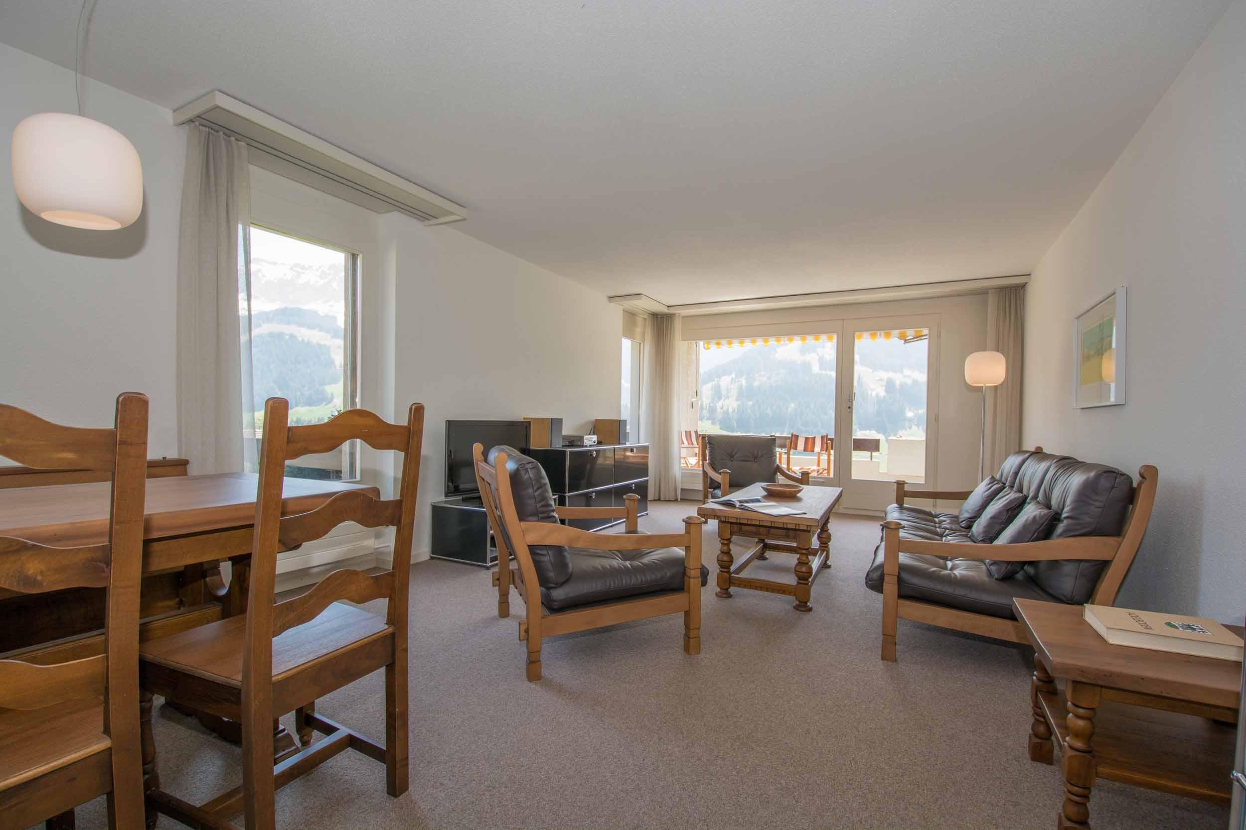 Die 3-Sterne Wohnung befindet sich im Erdgeschoss des Ferienhauses, nur rund fünfhundert Meter vom Dorfzentrum entfernt. Das grosse, helle Wohnzimmer ist eingerichtet mit einem Esstisch für 4 bis 5 Personen, einer gemütlichen Sitzgruppe, TV, Radio und W-LAN. Von hier gelangen Sie auf den Balkon mit herrlicher Aussicht auf die Berge von Adelboden. Zwei Schlafzimmer, eines mit einem Doppelbett und eines mit einem Etagenbett, bieten 4 Personen Platz. Es sind grosse Schränke und genügend Abstellmöglichkeiten vorhanden. Zum Schlafzimmer mit Doppelbett gehört ein weiterer Balkon. Die offene Küche ist ausgestattet mit Kochstelle, Backofen, Geschirrspüler und Kühlschrank. Im Bad finden Sie Waschbecken, Dusche und WC. Ein Garagenplatz mit Lift zur Wohnung und ein geheizter Ski-Raum sind ebenfalls vorhanden. Der Ski- und Ortsbus hält vor dem Haus.