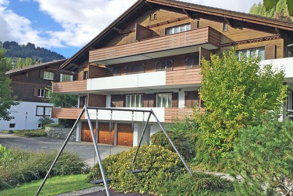 Vor dem Haus befindet sich ein Kinderspielplatz. In 200 Meter erreichen Sie die Gondelbahn zum Hauptskigebiet und die Dorfstrasse mit Restaurants und Einkaufsmöglichkeiten. Gleich neben der Liegenschaft befindet sich das Freibad von Adelboden.