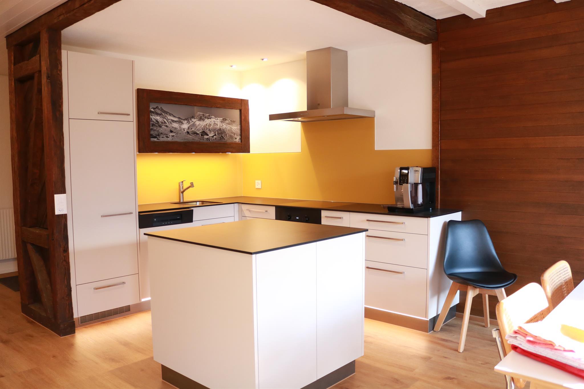 3-Zimmerwohnung (68 m2) im 2. Stock in einem Mehrfamilienhaus mit 6 Wohnungen. 2 Schlafzimmer mit 1 Doppelbett und 2 Einzelbetten. Duvets nordisch, Bettwäsche vorhanden. Wohn-Essküche mit Backofen, Kühlschrank, Geschirrspüler, Bohnen Kaffemaschine. Wohnzimmer mit Kabel-TV, Radio, WLAN. Bad/WC. 1 Balkon mit schöner Aussicht, Parkplatz in Einstellhalle ( 2.00 Hoch), Mitbenützung Waschmaschine, Skiraum, Zentralheizung. Nichtraucherwohnung.