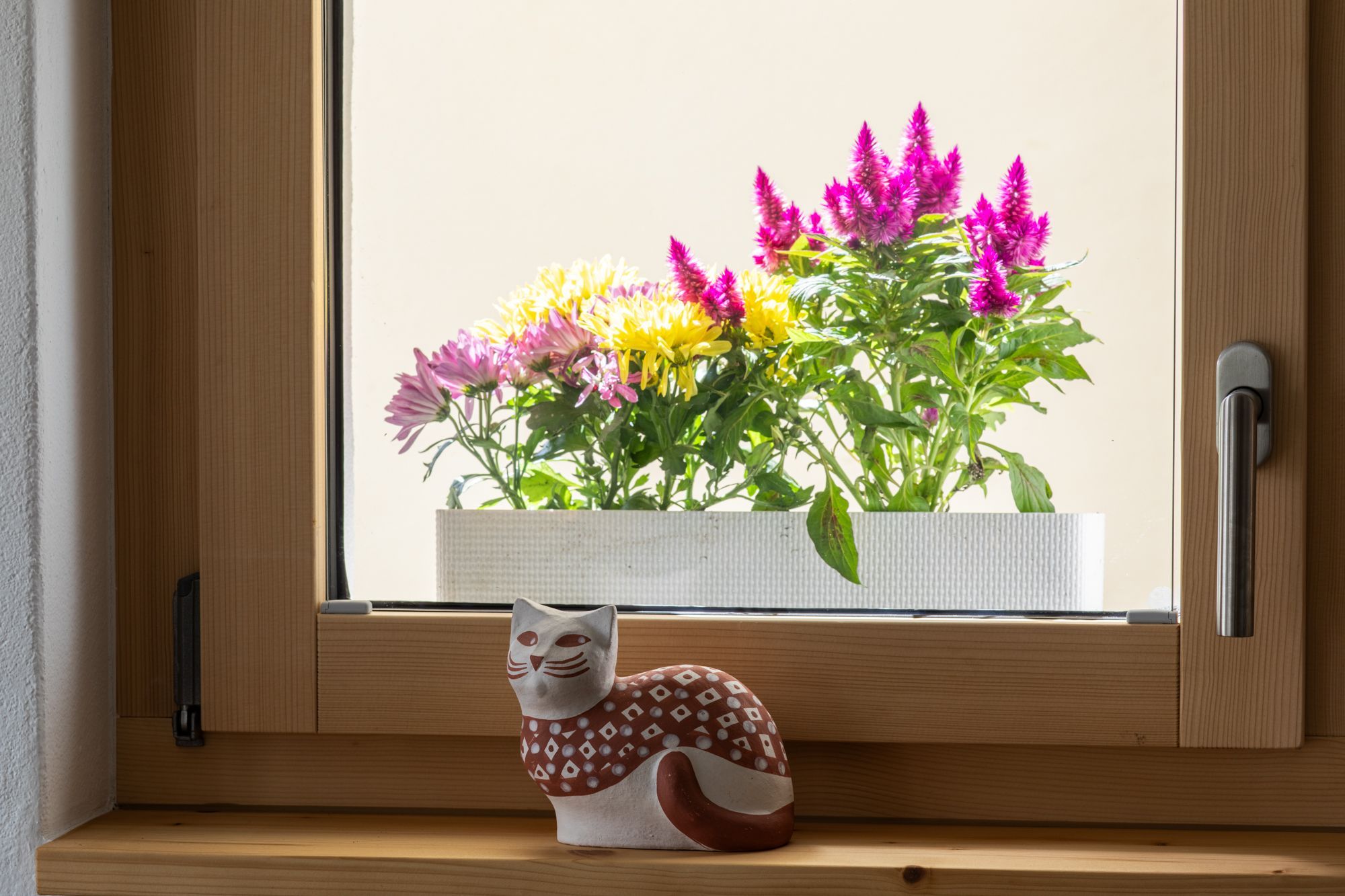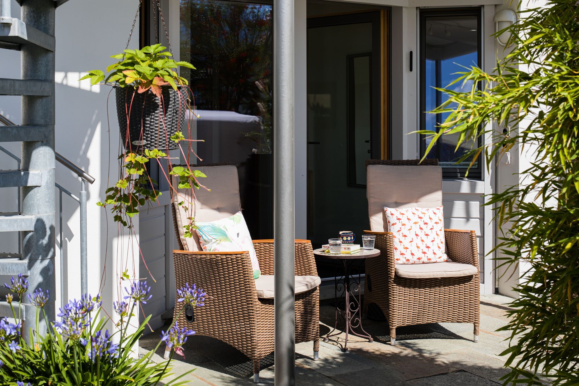 Der Außenbereich ist besonders kinderfreundlich gestaltet mit einem umzäunten Garten, der Sicherheit für Kleinkinder bietet. Der sonnige Gartensitzplatz lädt zu entspannten Stunden mit Blick auf die Berge ein. Als Teil unserer kleinen Gemeinschaft leben hier auch ein großer Hund und zwei Norwegische Waldkatzen, die freundliche Gefährten für Tierliebhaber sind.