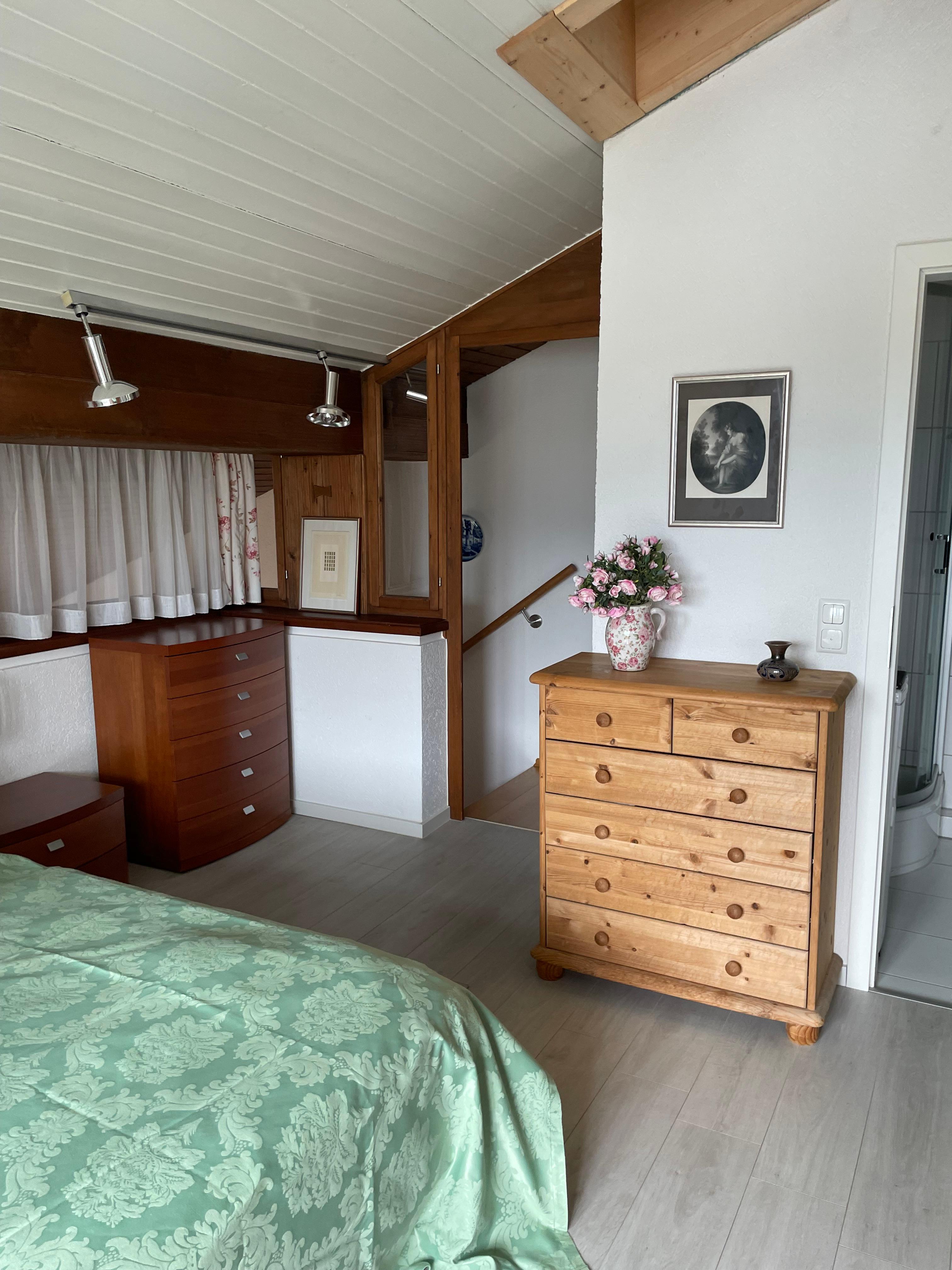 • Komfortable Schlafzimmer: Im Obergeschoss erwartet Sie ein geräumiges, ruhiges Schlafzimmer mit großem Doppelbett und einem Badezimmer. Perfekt für erholsame Nächte!
