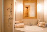 Gesundheitsbewußt und liebevoll eingerichtet, Wohnungsgröße 55 m²; 2 Schlafzimmer, im Kinderzimmer steht ein Etagenbett, Bettlänge 200 cm, Naturmatratzen, Schafwollbettdecken, Wohnküche, E-Herd mit Backofen, Mixer, Kaffeemaschine, ausreichend Geschirr, Kühlschrank, Couch mit Leselampe, TV, Radio mit CD und MP3, WLAN, Vorraum mit Garderobe, Bad und WC getrennt, Föhn, Bettwäsche, Hand-, Bade- und Geschirrtücher, Holzblockhaus, Vollholzmöbel, Parkettböden