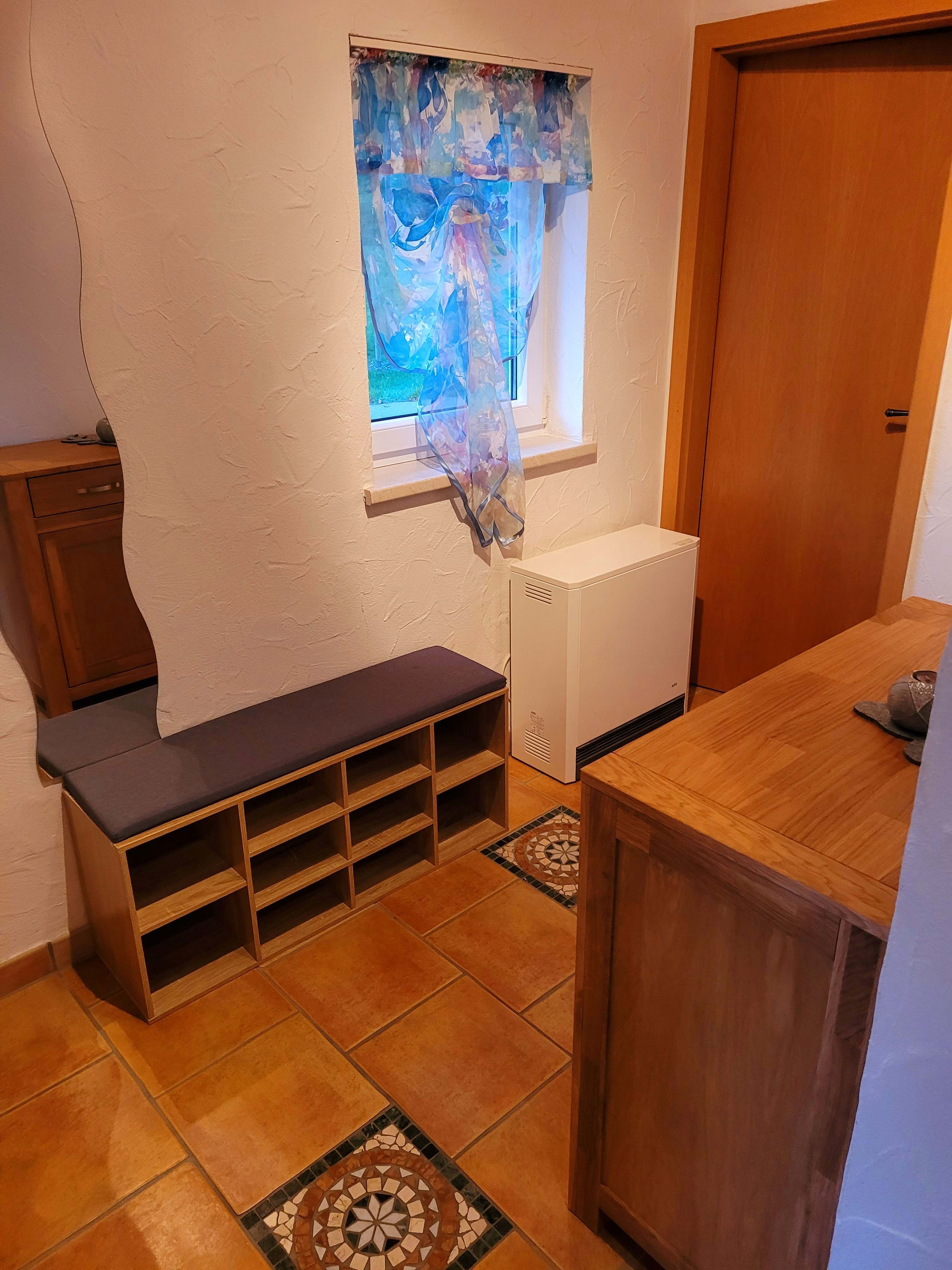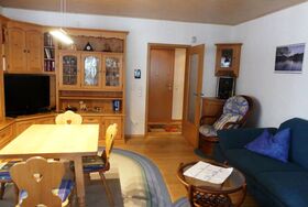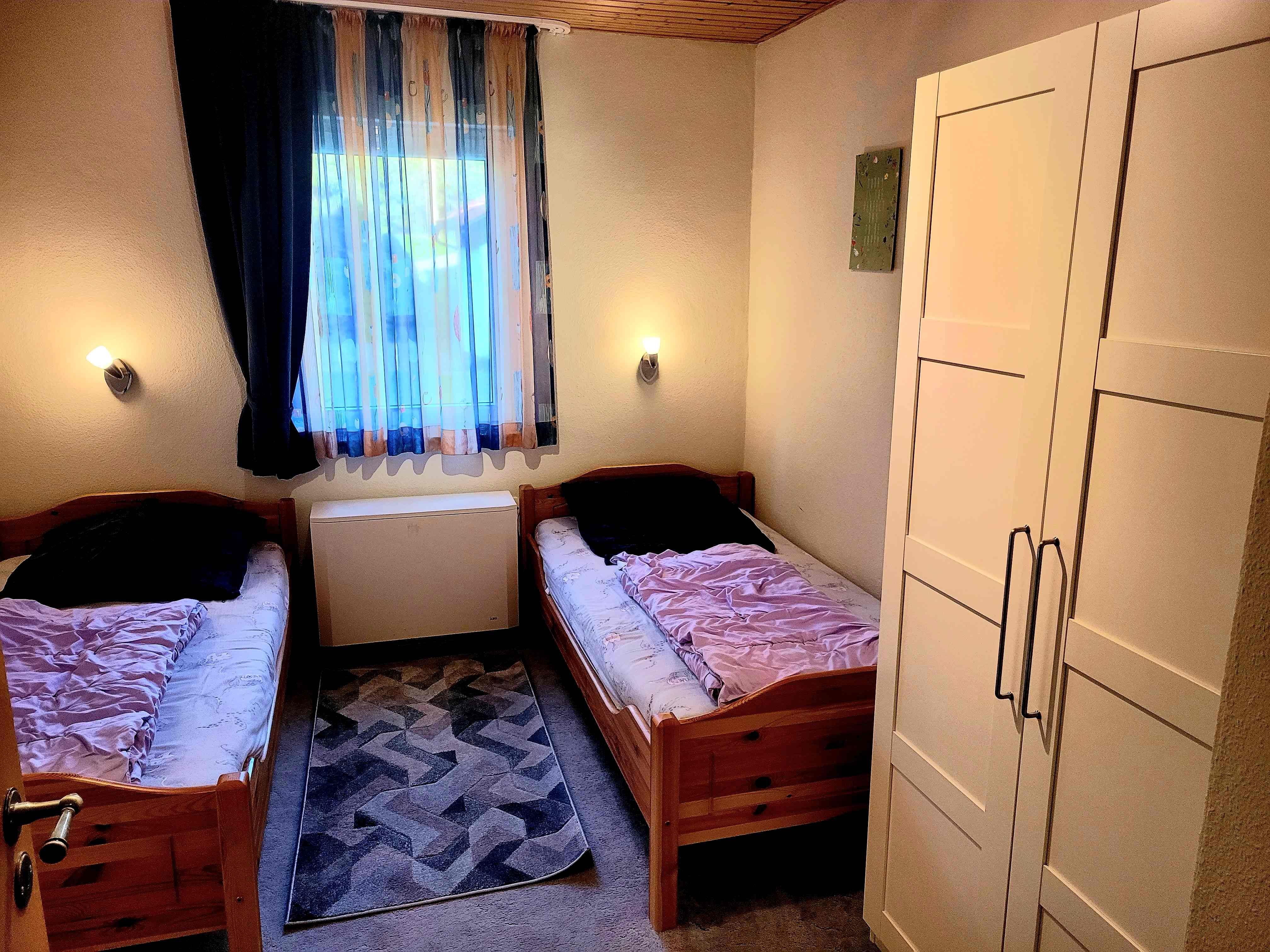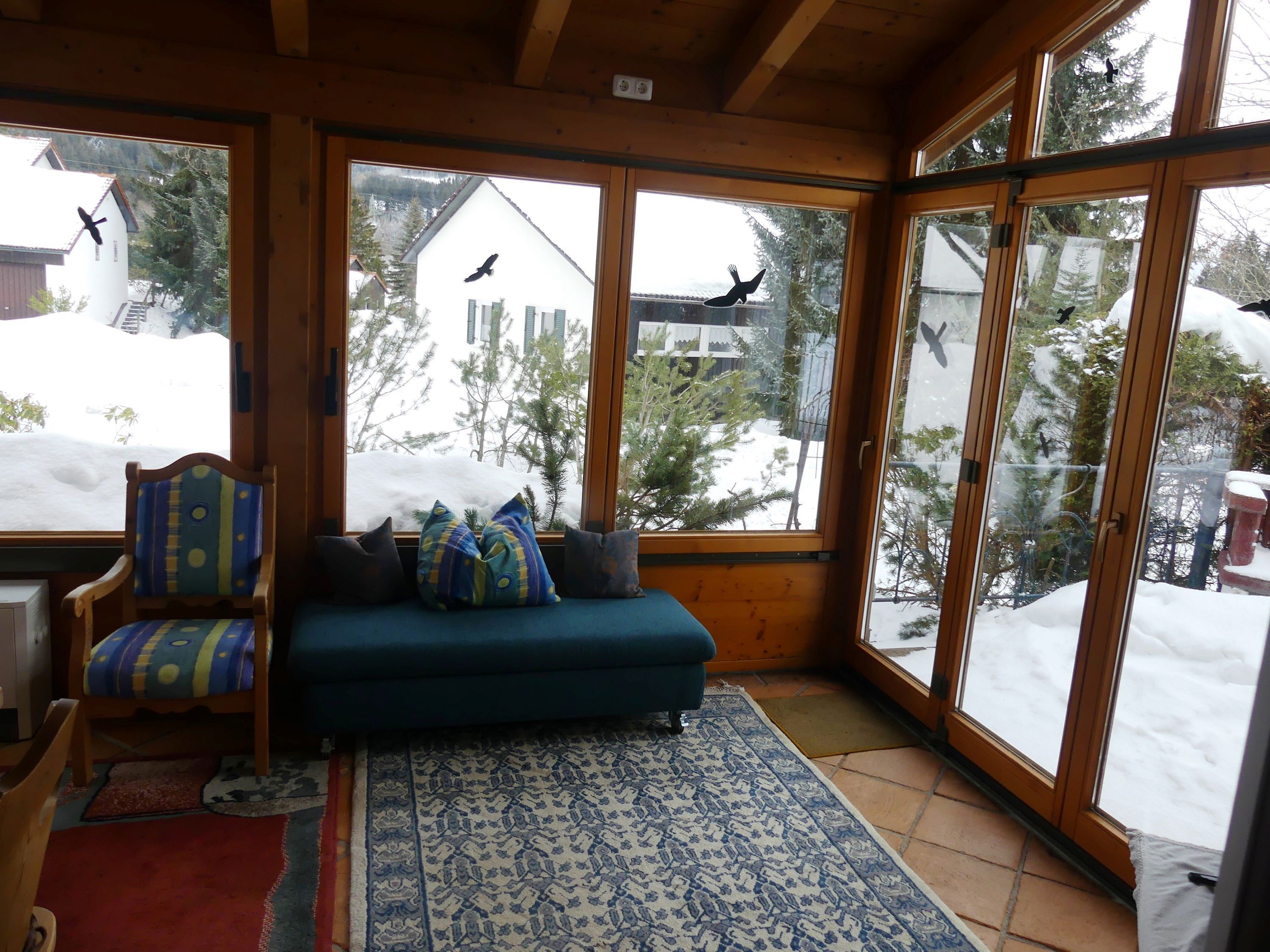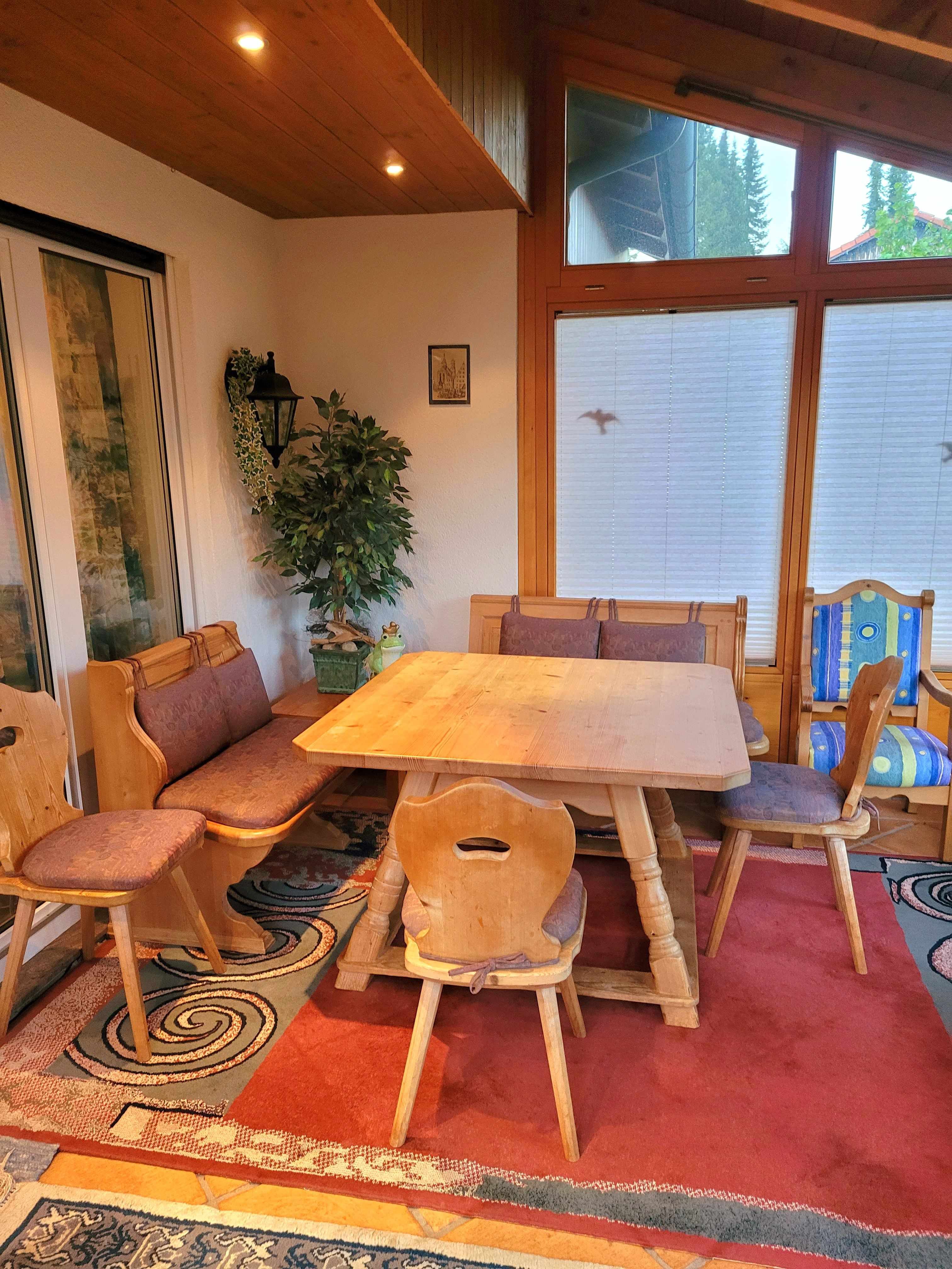Die Zimmer sind mit hellen Möbeln eingerichtet, wobei das Wohnzimmer im “Allgäuer-Voralpenstil” gehalten ist und eine gemütliche Atmosphäre schafft.
