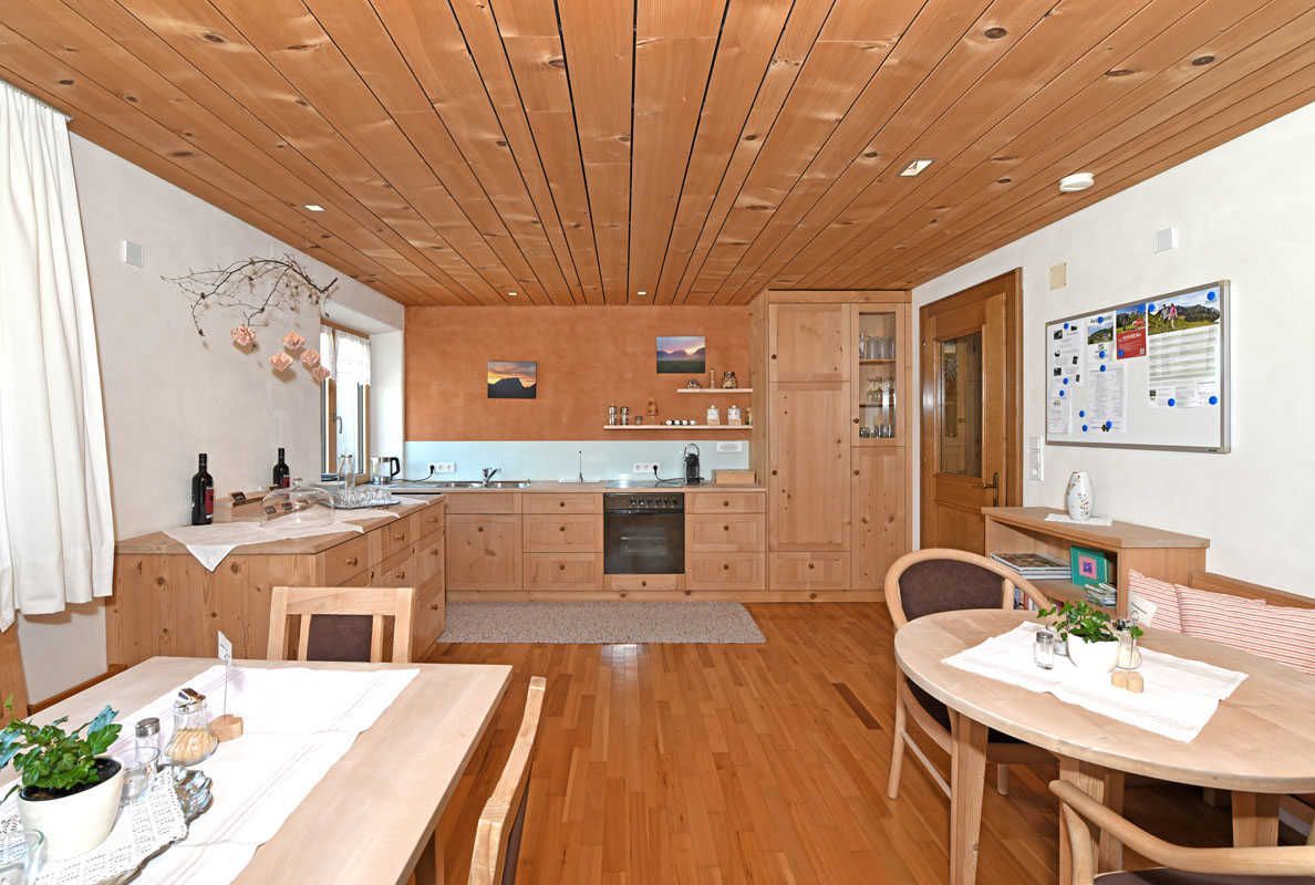 Unsere Fair ienwohnung ist etwas Besonderes. Böden, Decken und Möbel wurden konsequent aus dem Hochgebirgsholz unseres eigenen Bergwaldes gefertigt. Jede Kammer wurde einer Holzart zugeordnet: Ahorn, Buche, Esche und Eiche. Alle tragen den Namen des Holzes mit dem sie ausgestattet sind. Ausgestattet sind alle mit Dusche und WC.