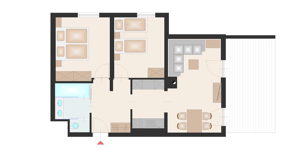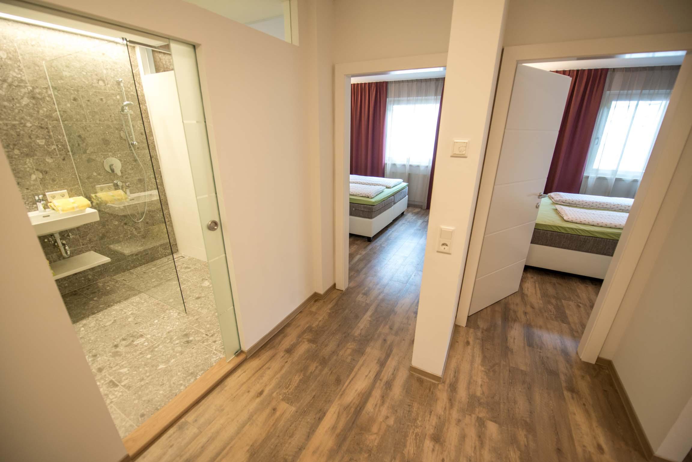 Neue Ferienwohung im 1. Stock mit Terrasse, 65 m² Wohnfläche und 15 m² Terrasse. Zwei getrennte Schlafzimmer, WC und Badezimmer mit Dusche, gut ausgestattete Küche mit Geschirrspüler (Kaffeevollautomat, Micro), schönes Wohnzimmer mit Ledergarnitur, eigenem Esstisch mit Terrasse, gratis Wifi, Waschmaschine und Trockner, moderne und hochwertige Ausstattung!