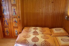3-Zimmer-Wohnung 50 m2, im Erdgeschoss, Südlage. Einfach und gemütlich eingerichtet: kleines Wohn-/Esszimmer mit Essecke und Sat-TV (Flachbildschirm). 1 kleines Zimmer mit 1 Doppelbett (180 cm, Länge 200 cm). 1 Zimmer mit 2 Betten (90 cm, Länge 200 cm), Waschbecken. Kleine, offene Küche (4 Kochplatten, Backofen, Mikrowelle, elektrische Kaffeemaschine, Racletteofen). Dusche, sep. WC. Ölheizung. Gartensitzplatz 35 m2, teilweise überdacht. Terrassenmöbel, Liegestühle (5). Schöne Sicht auf die Berge, das Tal, die Landschaft und die Ortschaft. Zur Verfügung: Internet (Wireless LAN, gratis). Parkplatz. Bitte beachten: Nichtraucher-Unterkunft. Maximal 1 Haustier/Hund erlaubt.