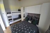 Das Schlafzimmer verfügt über ein Doppelbett (Maße: 140x200 cm) und einem Etagenbett (Maße: je 90x200 cm, auch für Erwachsene geeignet bis 100 kg), was einer Belegung von max. 4 Personen entspricht.