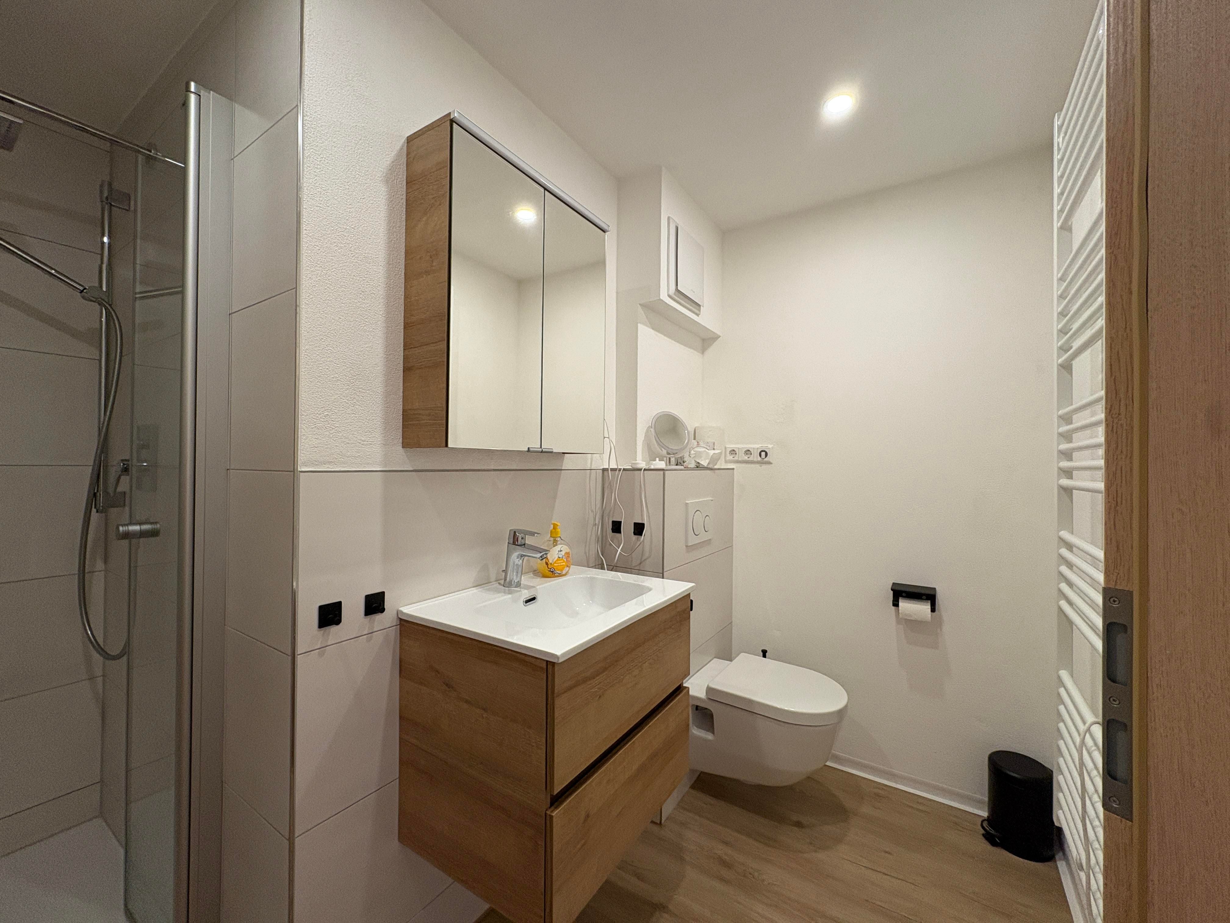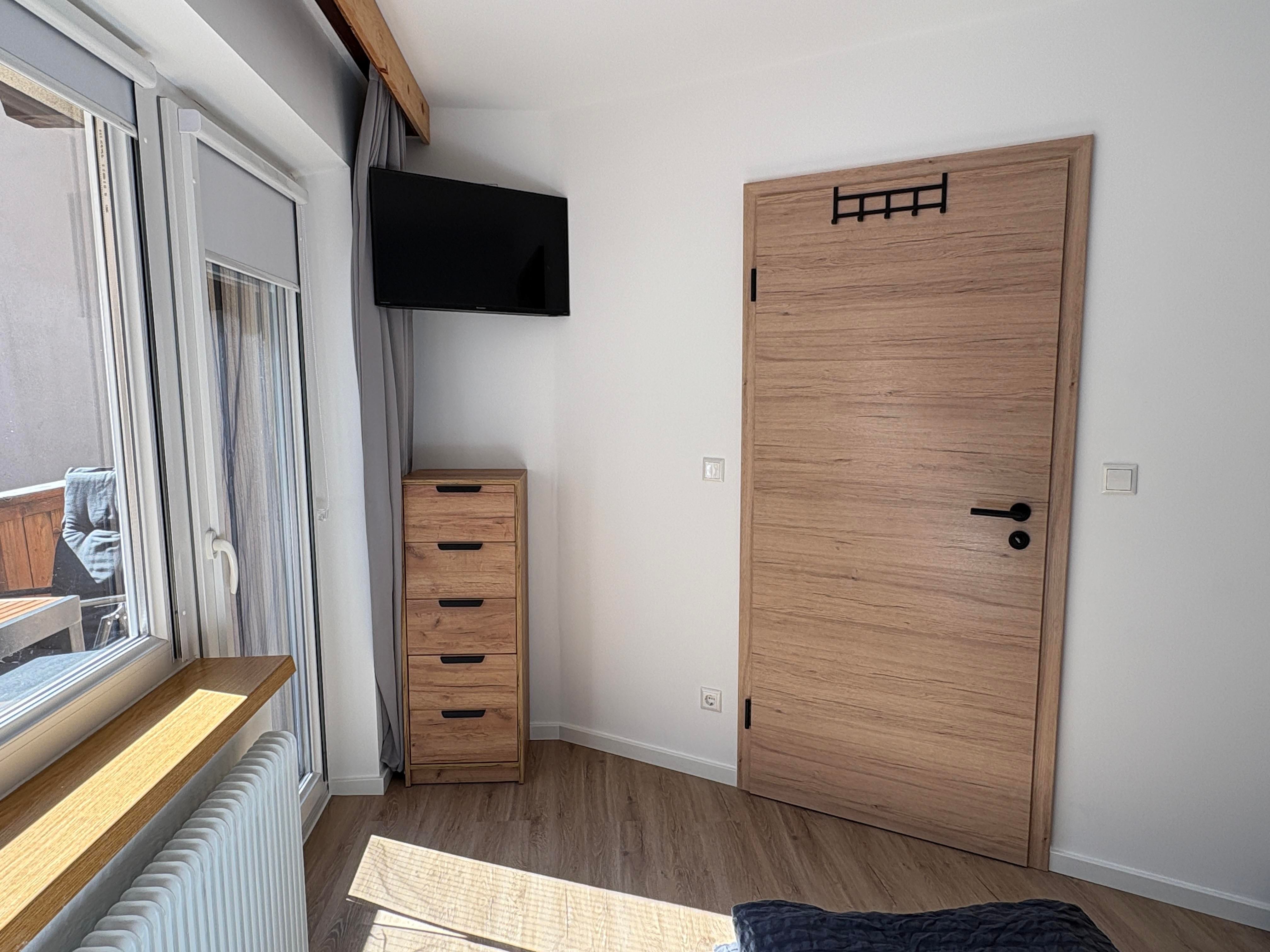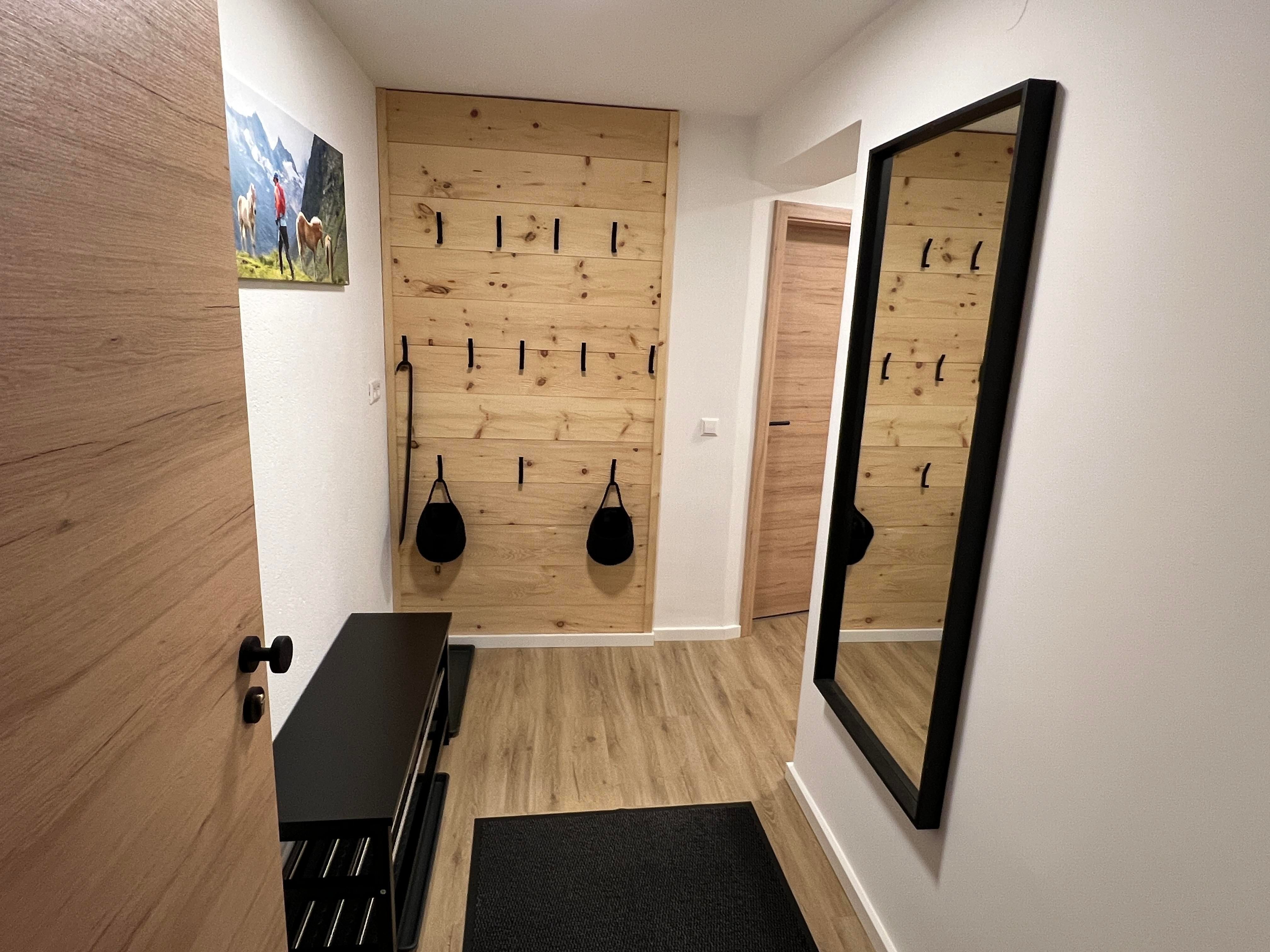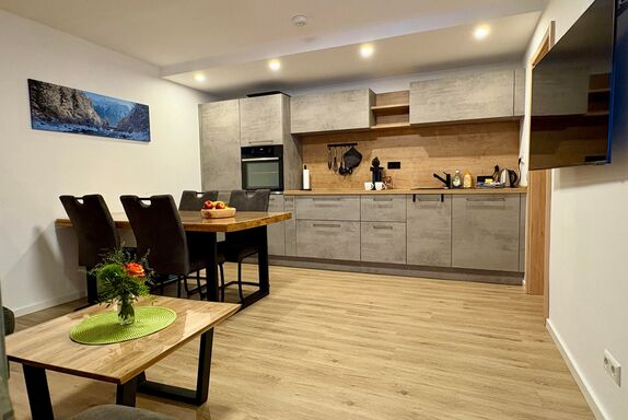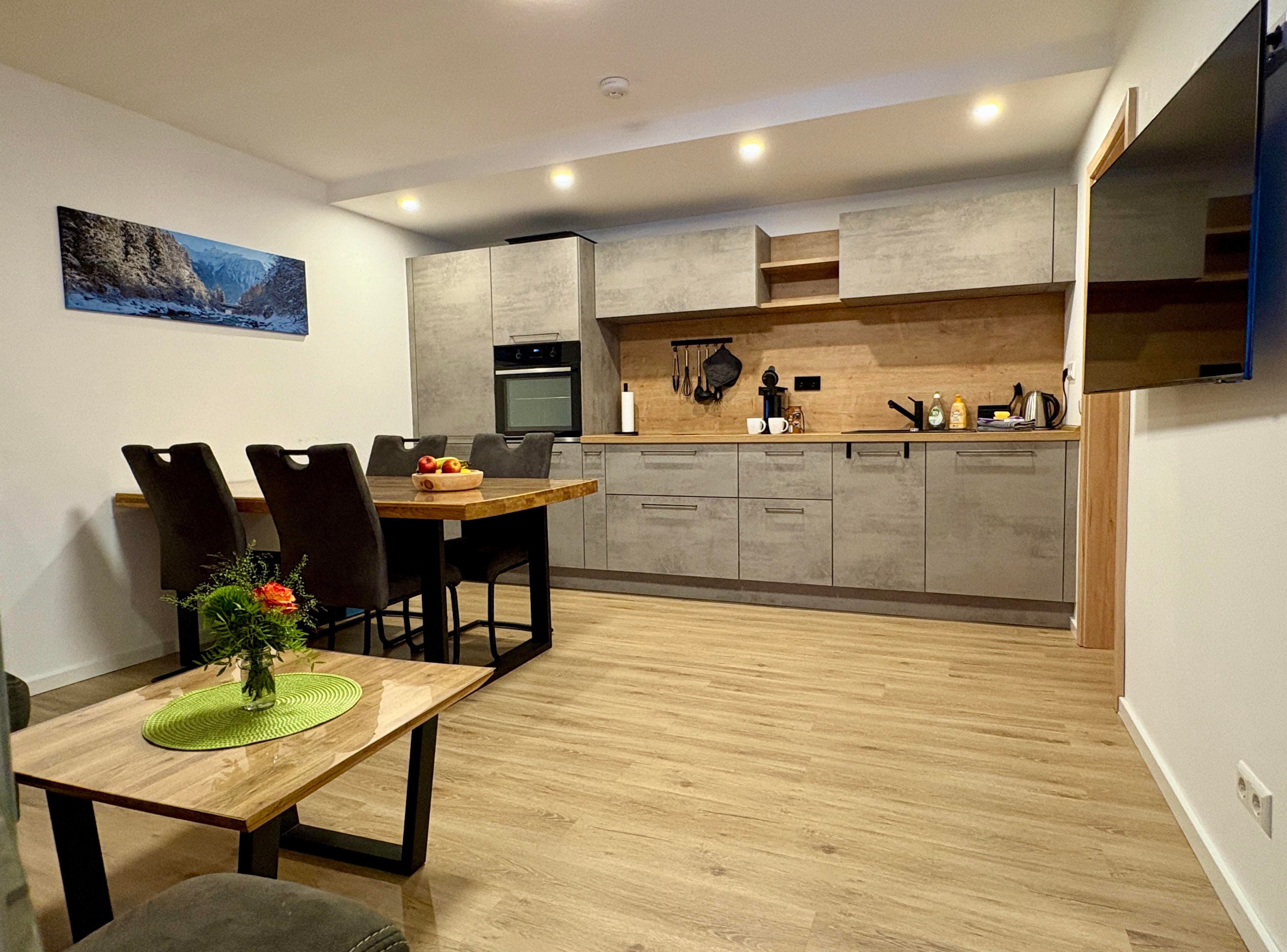 Das Appartement (ca. 60 m²) besteht aus einem Schlafzimmer mit Boxspringbett und TV, einem Schlafzimmer mit Stockbett (bis ca. 100 kg), einer vollausgestatteten Wohnküche (Backofen, Induktionskochfeld, Kühlschrank, Gefrierschrank, Kaffeemaschine mit Pads und Filter, Wasserkocher, Geschirrspülmaschine, Kinderbesteck, uvm.), Essbereich, TV, ausziehbare Couch (Schlafmöglichkeit für die 5. und 6. Person) und einem Badezimmer mit Dusche/WC (Ladegeräte für elektrische Zahnbürsten und Fön sind vorhanden)