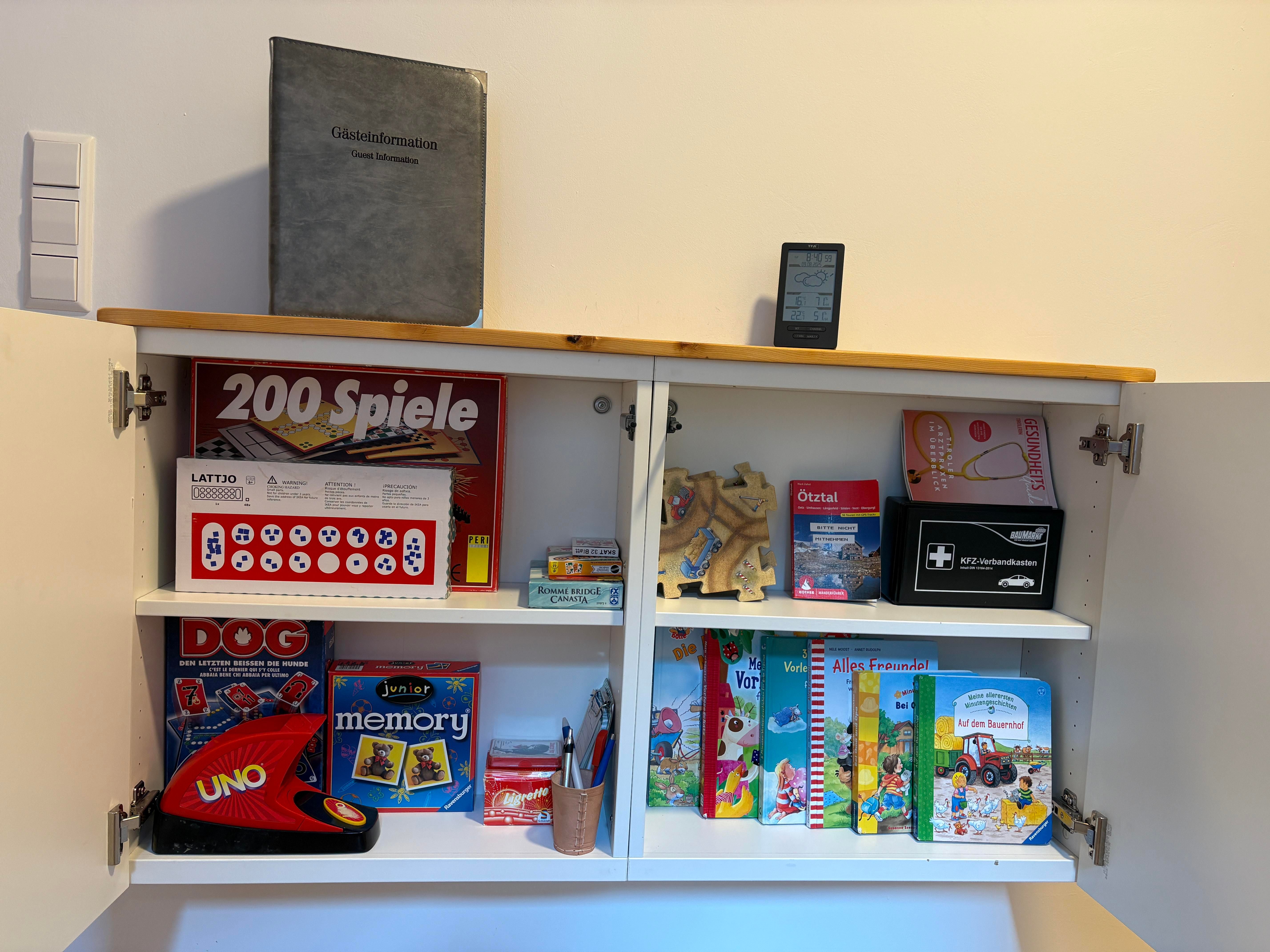 Auf Anfrage können gerne ein Kinderreisebett, ein Rausfallschutz, ein Kinderhochstuhl, eine Wickelunterlage, ein Windeleimer und ein Babyflaschenständer zur Verfügung gestellt werden.
