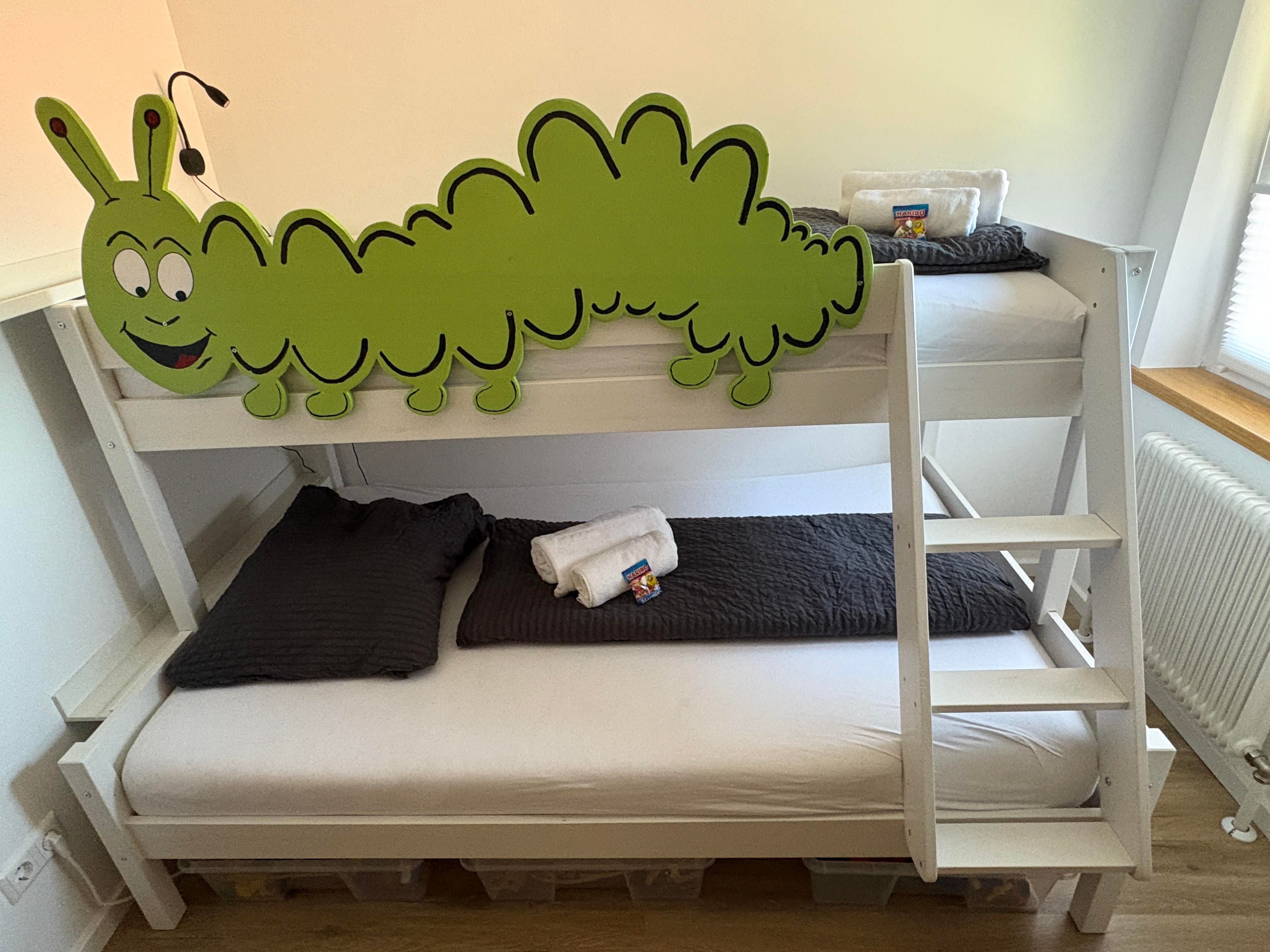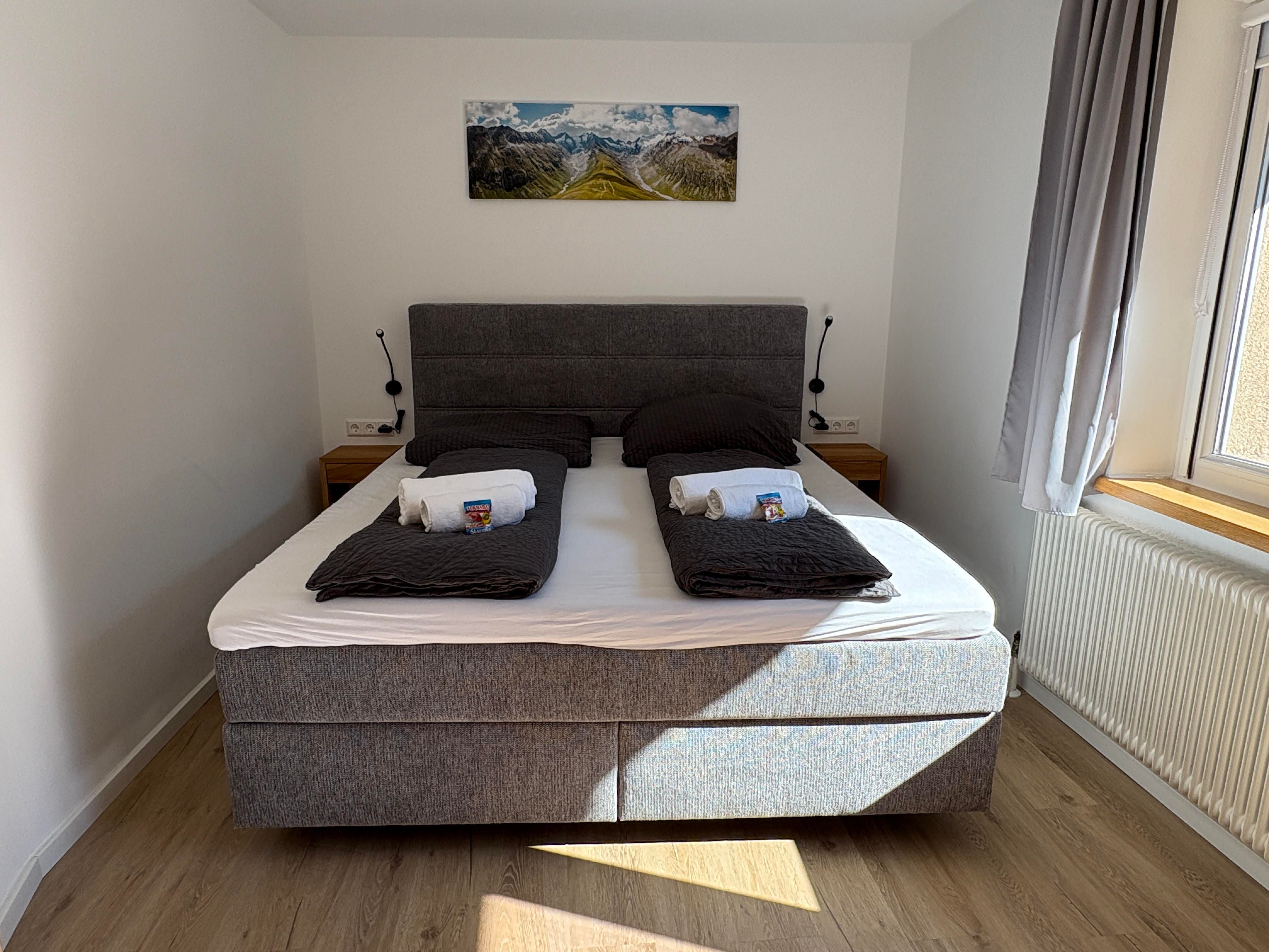 Beide Schlafräume können komplett abgedunkelt werden. Bettwäsche und Handtücher werden zur Verfügung gestellt.