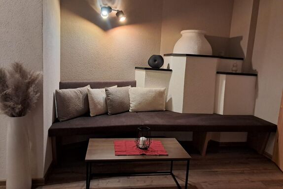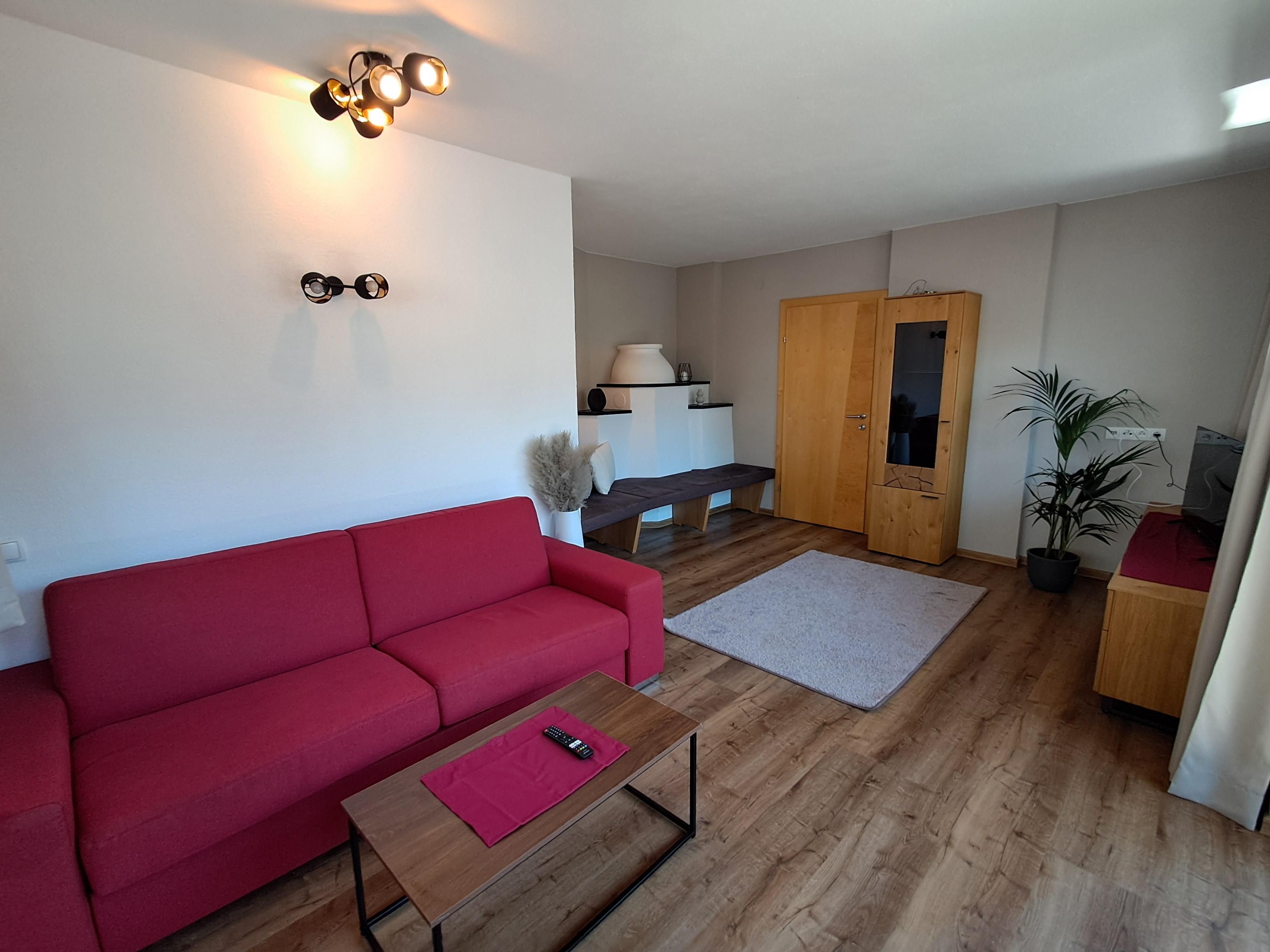 Das Apart 1 (ca. 63 m²) verfügt über ein Doppelzimmer, ein Wohnzimmer mit Doppelausziehcouch (Schlafmöglichkeit für die 3. und 4. Person.), ein Badezimmer mit Dusche, separates WC sowie eine voll ausgestattete Wohnküche (Cerankochfeld, Backrohr, Geschirrspüler, Kühlschrank mit Gefrierfach, Mikrowelle, Kaffeemaschine u. v. m.) sorgen für Komfort im Urlaub. Besonderes Highlight ist der Kachelofen, der auf Wunsch vom Vermieter eingeheizt wird – ideal für gemütliche Stunden nach aktiven Tagen im Tal. Das Bergpanorama lässt sich entspannt vom möblierten Balkon aus genießen.
