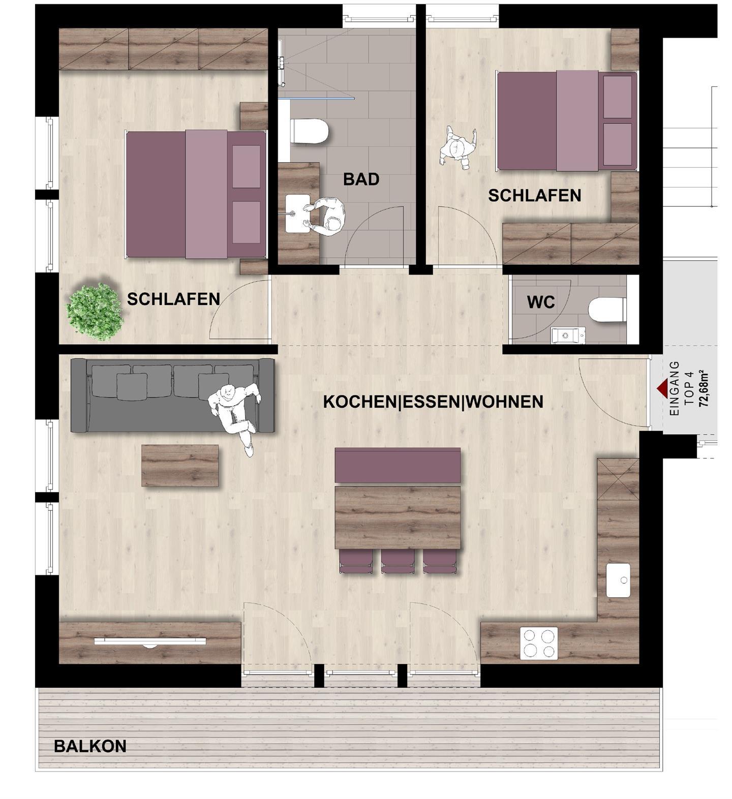 Genießen Sie Ihren Urlaub in unseren Neuerbauten 70 m² großen Ferienwohnungen. Das Appartement verfügt über zwei Schlafzimmer eines davon mit zusätzlichem Stockbett, ein Badezimmer mit Dusche / WC, ein zusätzliches WC und einem gemütlichen Wohnbereich.