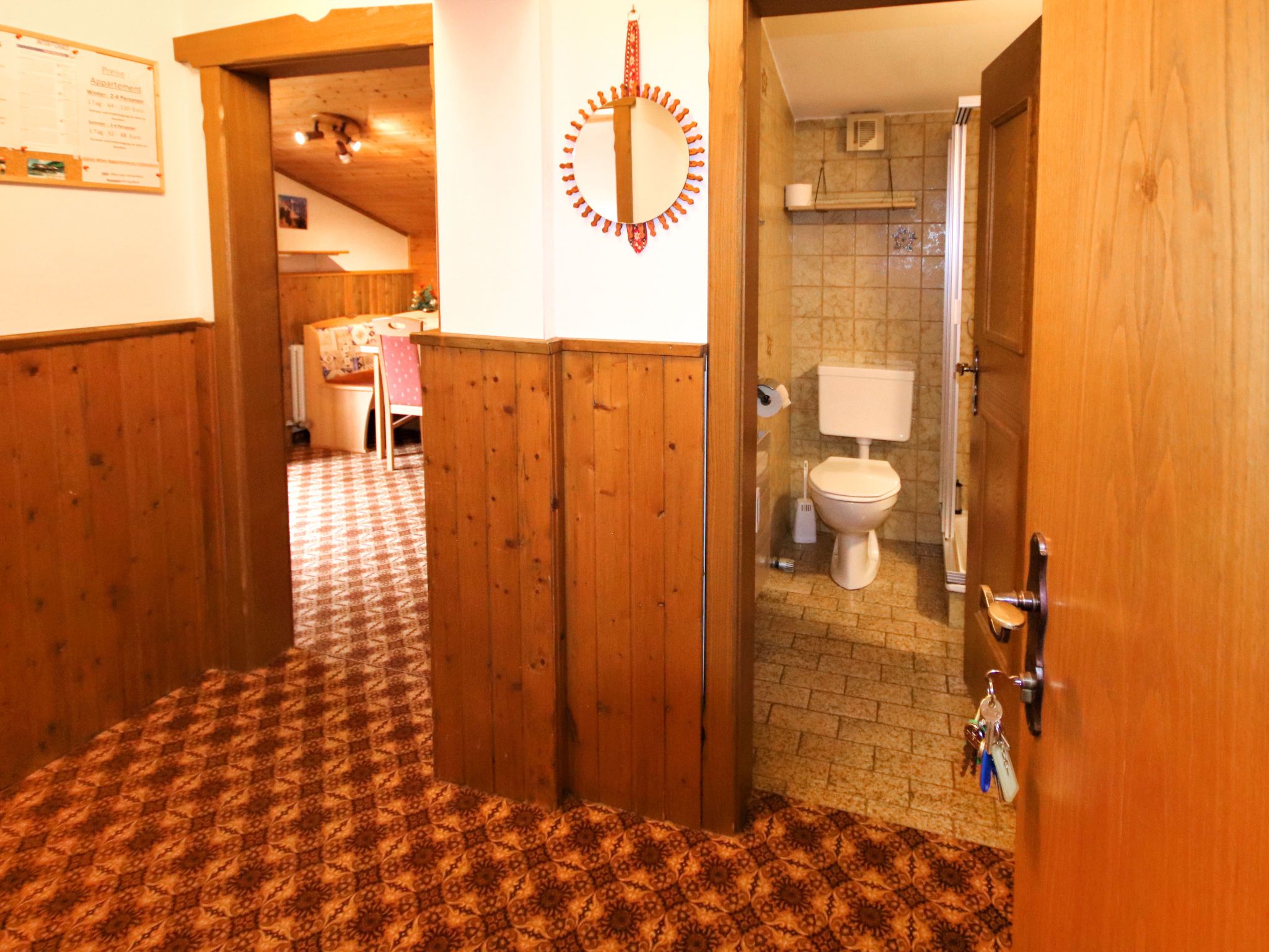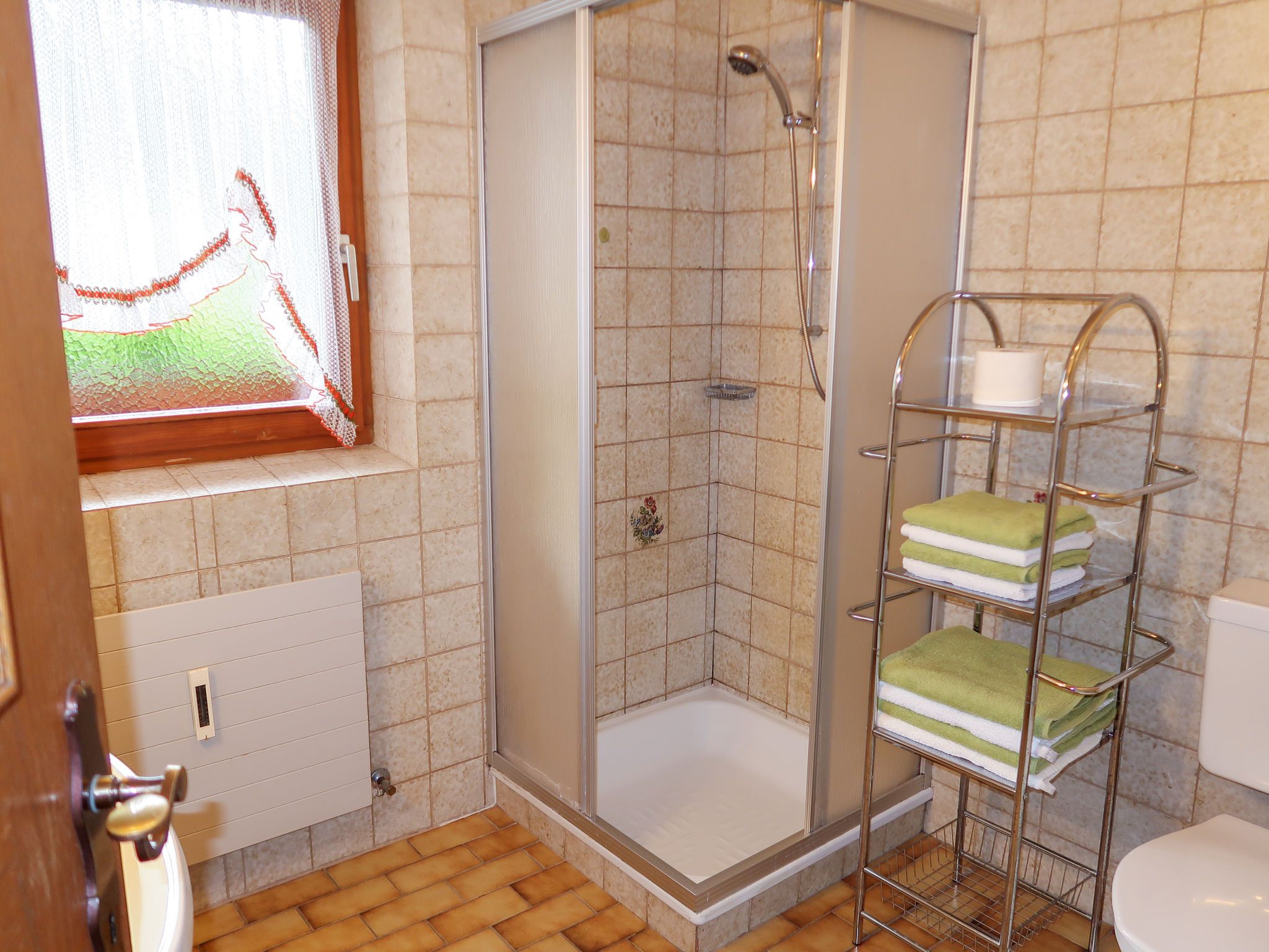 Fichtenblick, 5-Zimmer-Wohnung 75 m2, im Dachgeschoss, Südwestlage. Teilweise abgeschrägt, gemütlich und mit viel Holz eingerichtet: Wohn-/Schlafzimmer mit 1 Doppeldiwanbett, Essecke und Sat-TV. Ausgang zum Balkon. Durchgangszimmer mit 1 Doppelbett. Ausgang zum Balkon. Abgeschrägt 1 kleines Zimmer mit 1 x 2 Etagenbetten. Abgeschrägte Kochnische (Backofen, 4 Glaskeramikplatten, Toaster, Wasserkocher, elektrische Kaffeemaschine). Dusche/WC. Heizung. Dachgeschoss: 1 abgeschrägtes Doppelzimmer. Abgeschrägte Küche (Backofen, 4 Glaskeramikplatten, Toaster, Wasserkocher, elektrische Kaffeemaschine) mit Essecke und Sat-TV. Dusche/WC. Balkon. Balkonmöbel. Sicht auf die Berge und die Landschaft. Zur Verfügung: Kinderhochstuhl, Babybett. Internet (Wireless LAN, gratis). Bitte beachten: Nichtraucher-Unterkunft. Feuerlöscher. Haustiere nicht erlaubt.