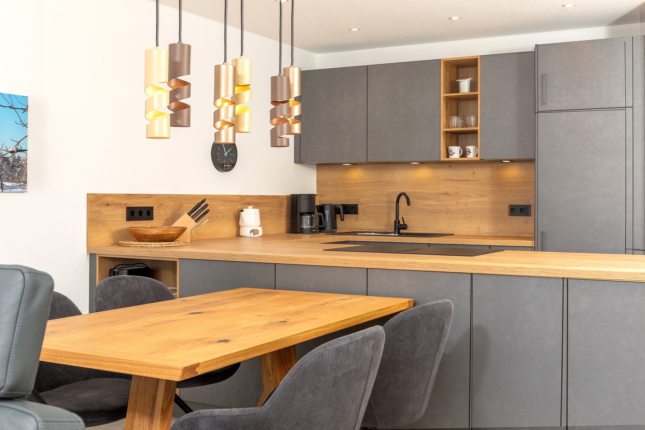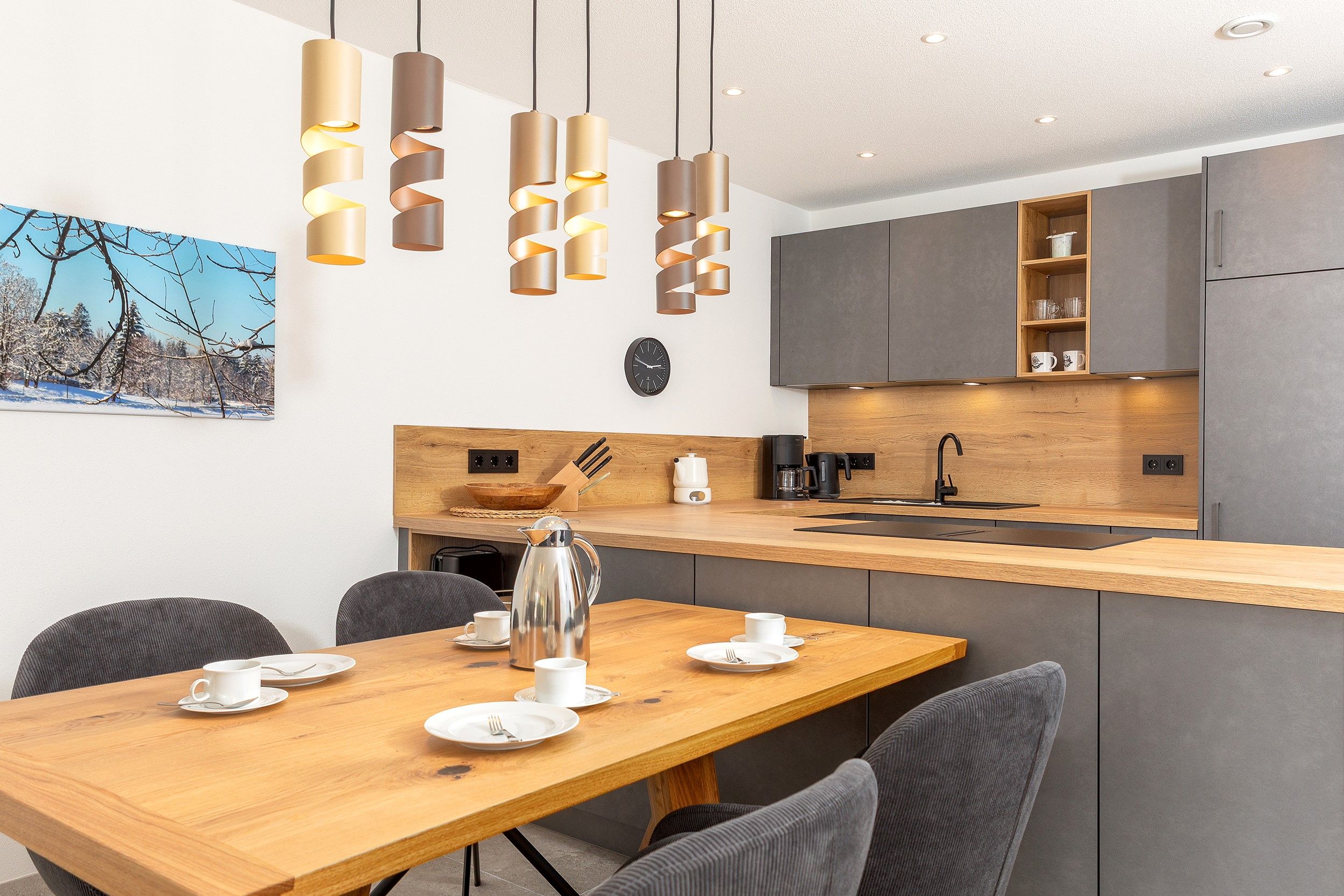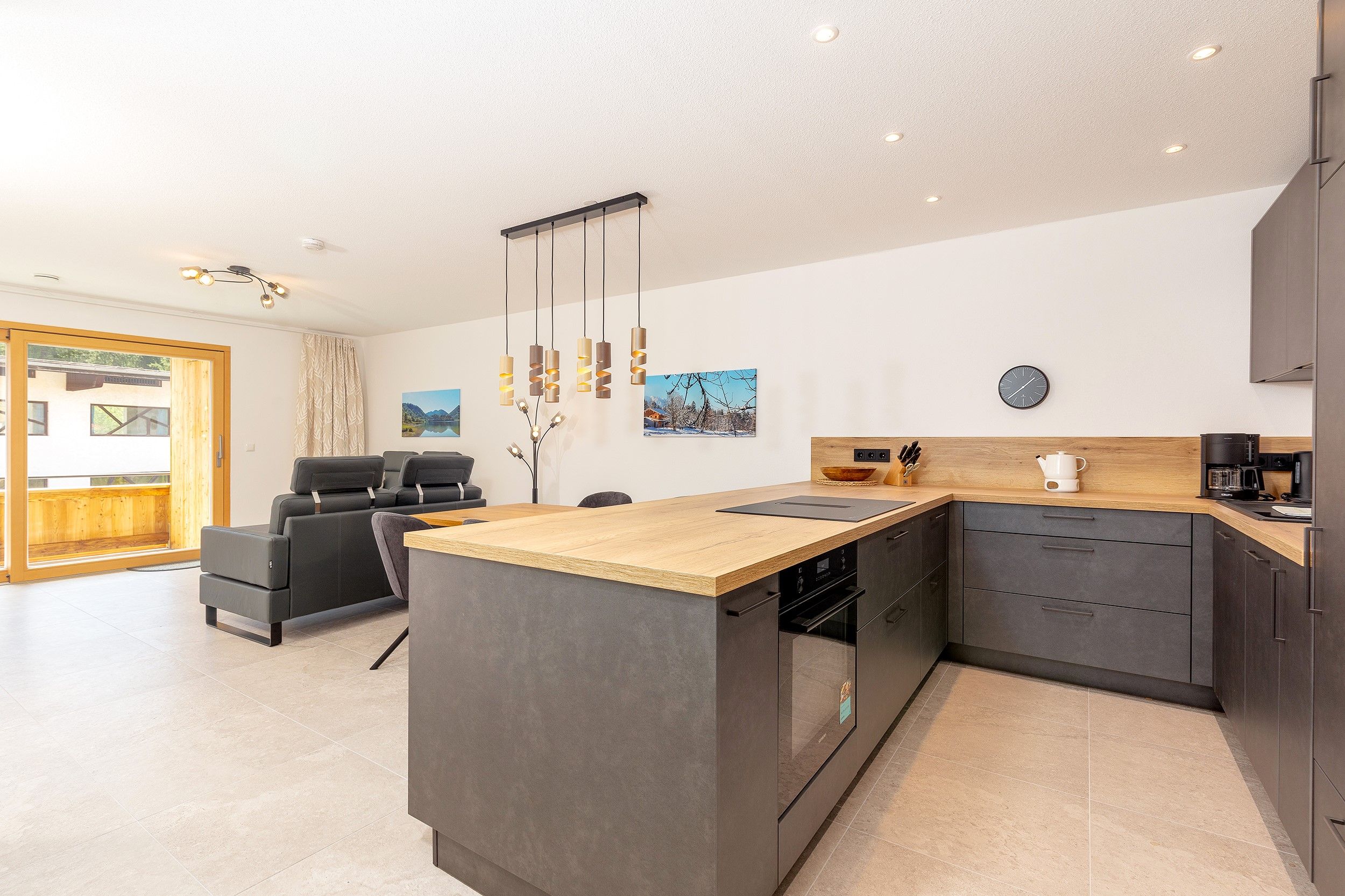 Die voll ausgestattete Küche mit Induktionsherd und Kochfeldabzug macht das Kochen zum Vergnügen. Zusätzliche Annehmlichkeiten wie Fußbodenheizung, ebenerdige Duschen, Tiefgaragenstellplatz, Aufzug, Skikeller und Fahrradraum garantieren Komfort auf höchstem Niveau. Die Wohnung ist liebevoll eingerichtet und sorgt u.a. mit lokalen eigenen Naturmotiven für Urlaubsstimmung.