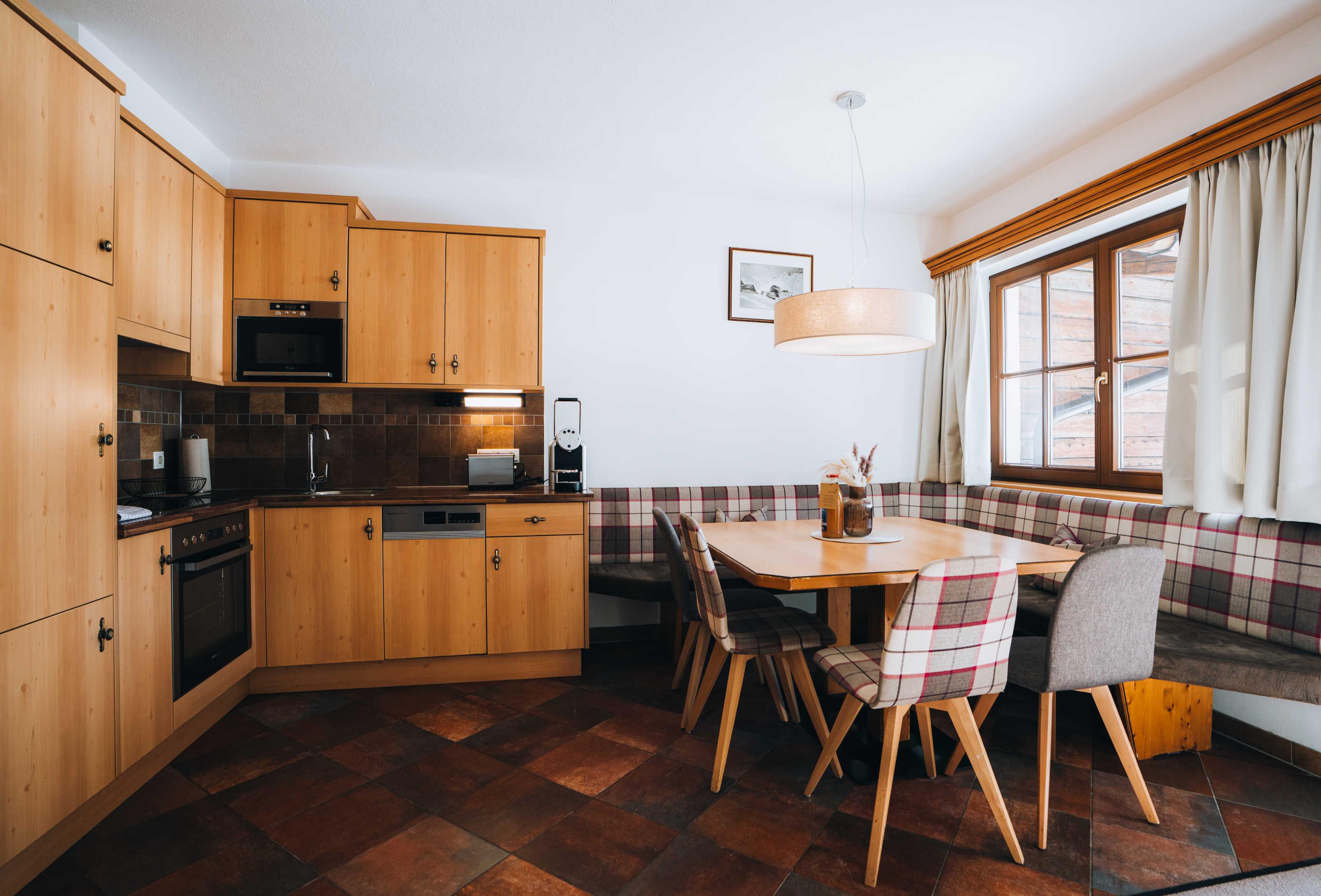 Private Sauna, WLAN, Flat-TV und ein Schlafsofa für 2 Personen im Wohnraum, ein Doppelbettzimmern, Safe, Balkon, Terrasse, Doppelbettzimmer und 1 Stockbettzimmer, komplette Küchenausstattung, Bettwäsche, Handtücher und Saunamäntel vorhanden. Schiraum mit Schischuhtrockner