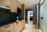 Modernes Studio L mit ca. 52 m² Wohnfläche: 2 Doppelzimmer; 1 Badezimmer mit Dusche/WC; 1 separates WC; 1 vollausgestatteter Kochnische (Nespresso Business Kaffeemaschine & Kaffeevollautomat, Cerankochfeld, Küchlschrank, Mikrowelle, Geschirrspüler, Essplatz uvm.); Balkon mit Süd- und Westausrichtung