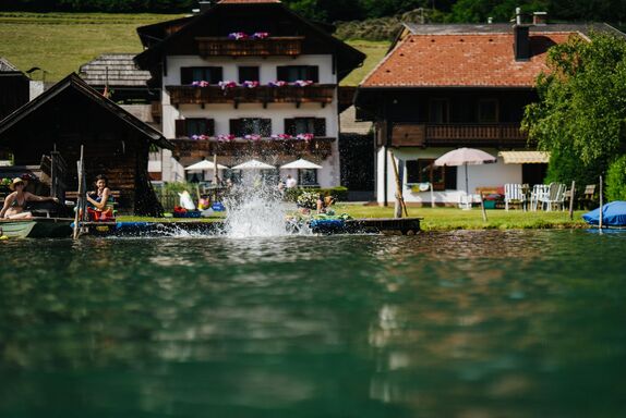 Ankommen und entspannen: Wir legen Wert auf Ihr Wohlbefinden. Daher haben wir unsere Ferienwohnungen und Zimmer mit Liebe zum Detail eingerichtet. Komfort und Wohlfühlatmosphäre ergänzen sich bei uns wunderbar – schließlich soll es Ihnen im Urlaub an nichts fehlen. Die Lage unserer Unterkunft ist einladend: Mitten im Naturpark Weißensee direkt am See, ein wenig abseits des Trubels und dennoch alle Aktivitäten in Gehweite.