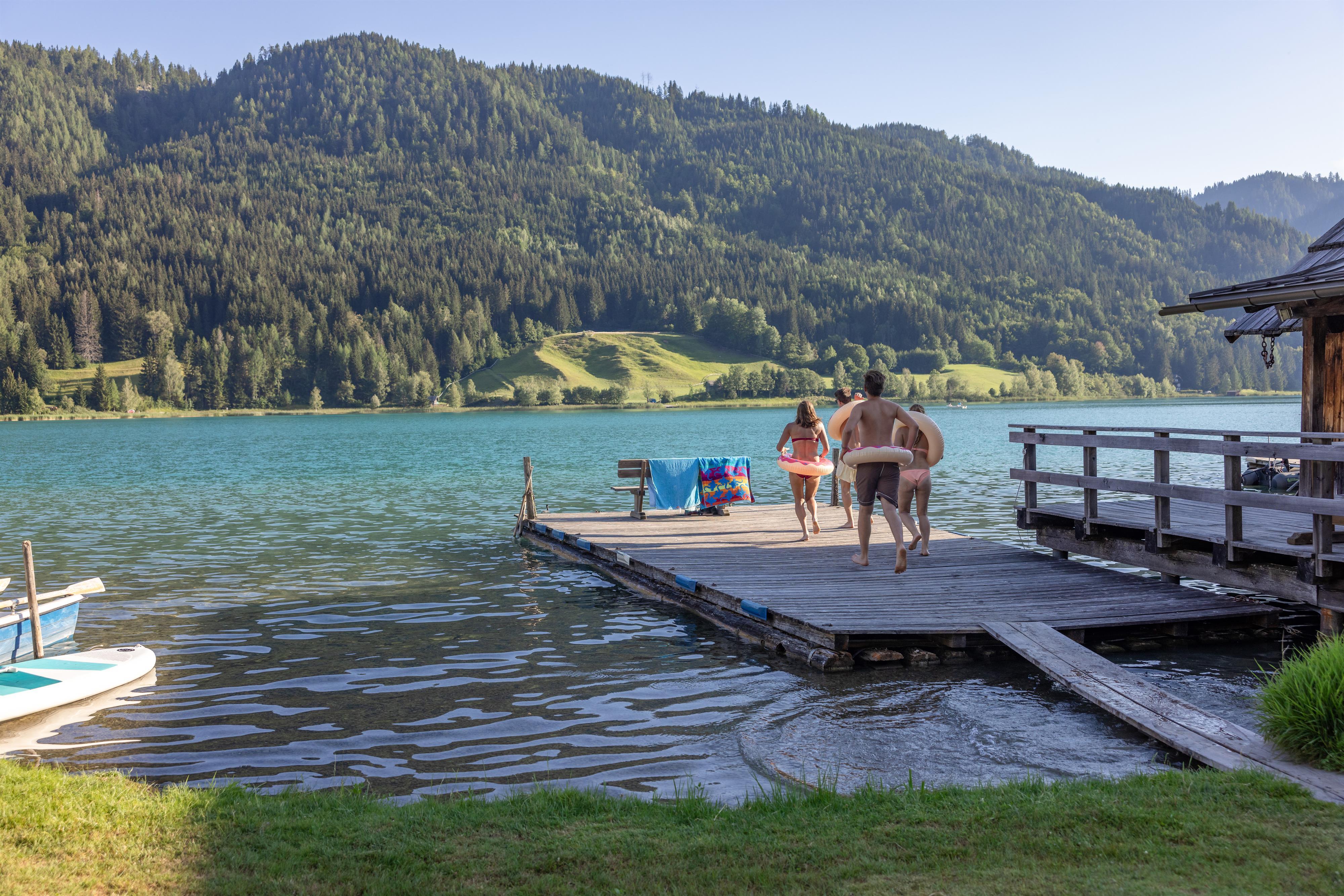 Ankommen und entspannen: Wir legen Wert auf Ihr Wohlbefinden. Daher haben wir unsere Ferienwohnungen und Zimmer mit Liebe zum Detail eingerichtet. Komfort und Wohlfühlatmosphäre ergänzen sich bei uns wunderbar – schließlich soll es Ihnen im Urlaub an nichts fehlen. Die Lage unserer Unterkunft ist einladend: Mitten im Naturpark Weißensee direkt am See, ein wenig abseits des Trubels und dennoch alle Aktivitäten in Gehweite.