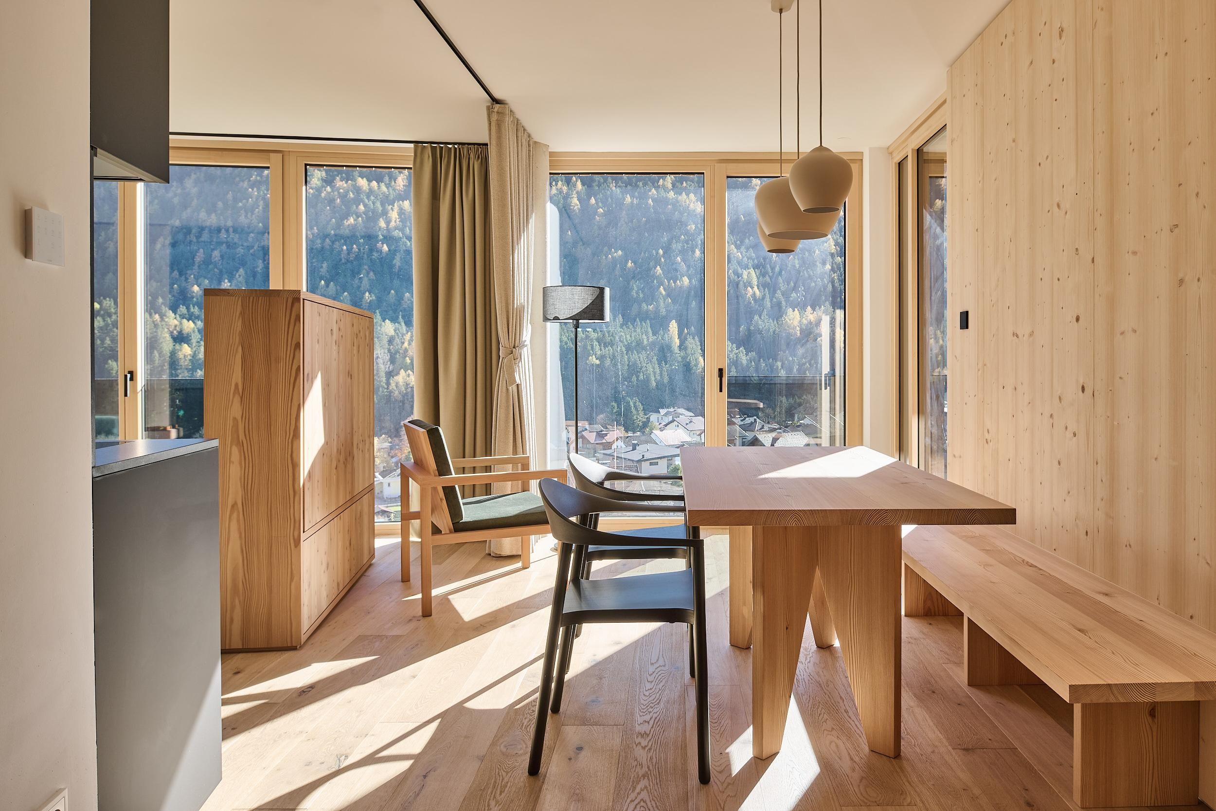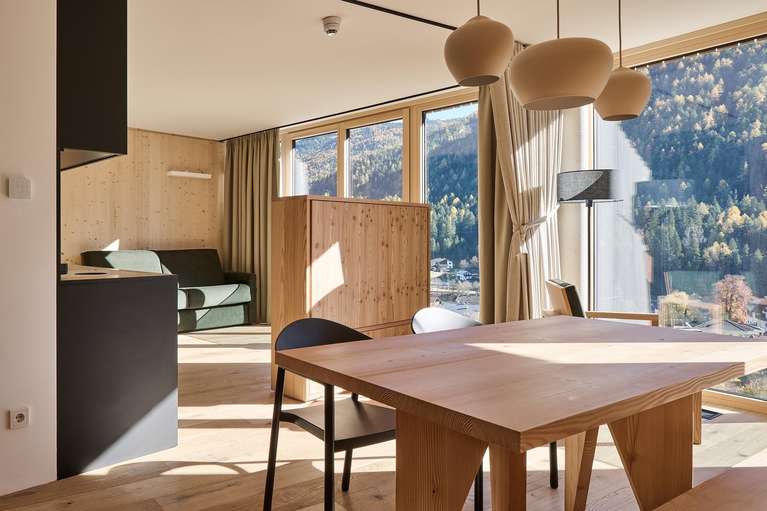 Die Lärchenlodge in Fulpmes steht für modernes alpines Design, hochwertige Materialien und echte Tiroler Handwerkskunst. Die großzügigen Apartments bieten viel Ruhe, Komfort und eine warme Atmosphäre.