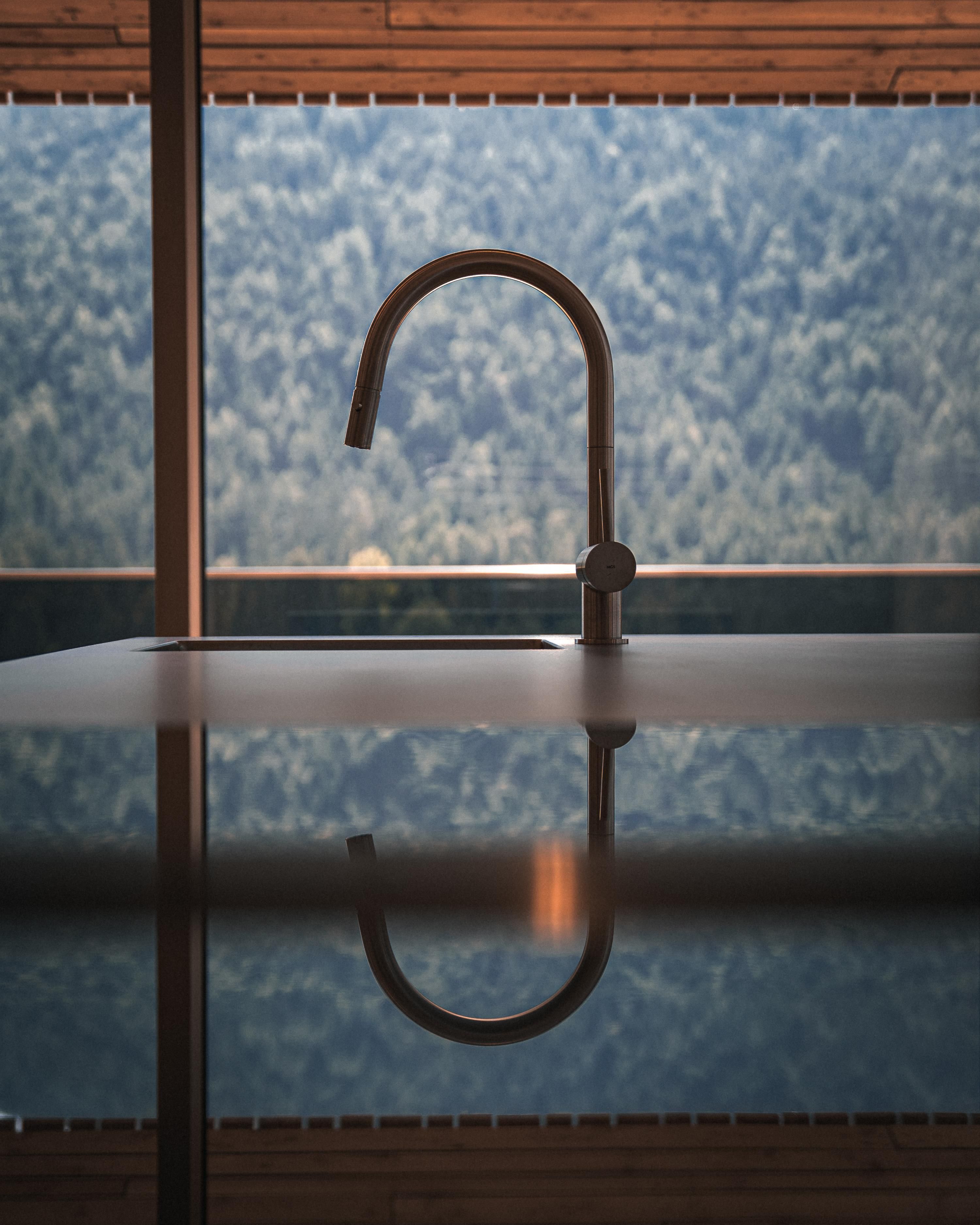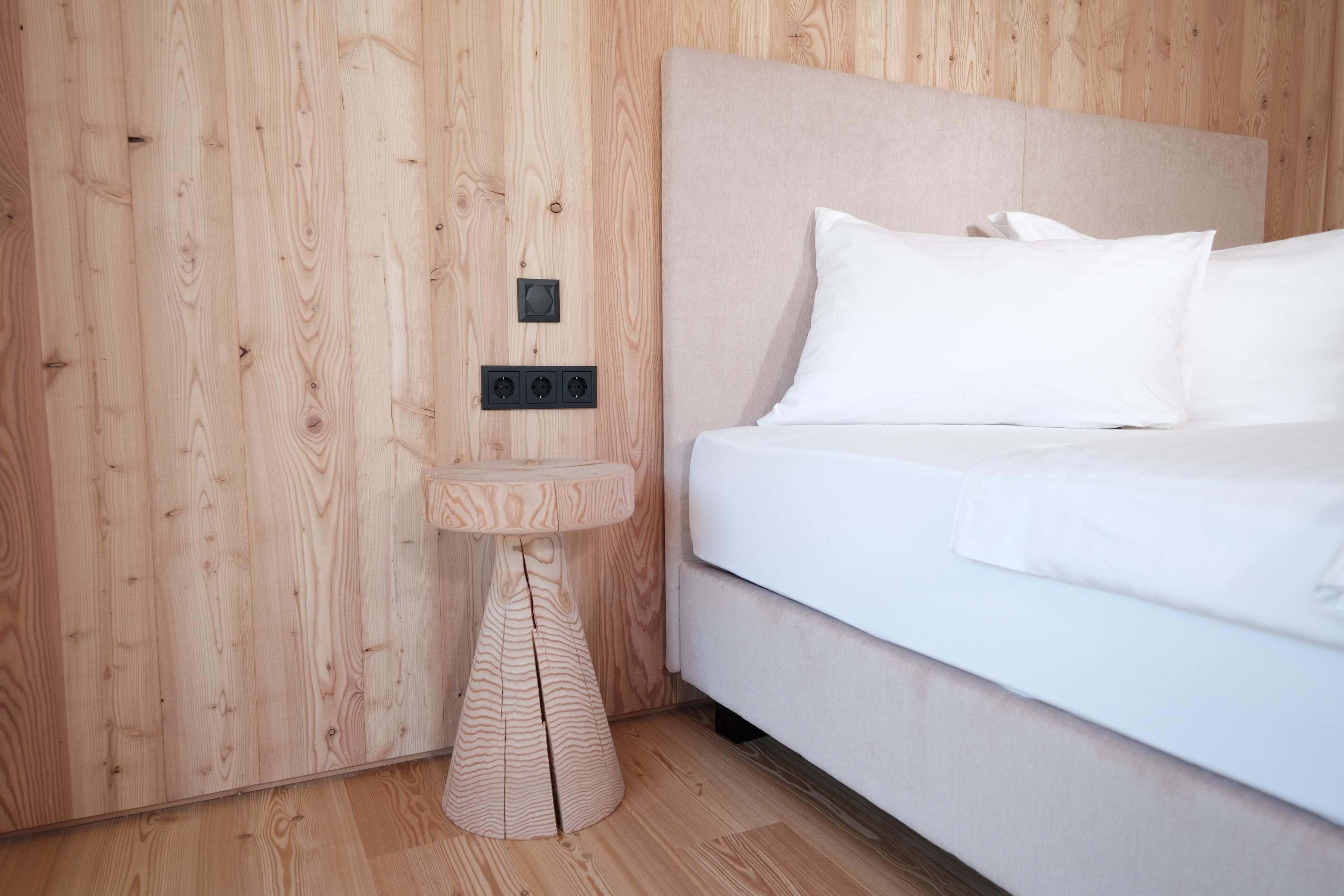 Ein Haus, gebaut aus Lärche aus dem familieneigenen Wald, angefangen mit der Fassade bis hin zu den Möbeln.