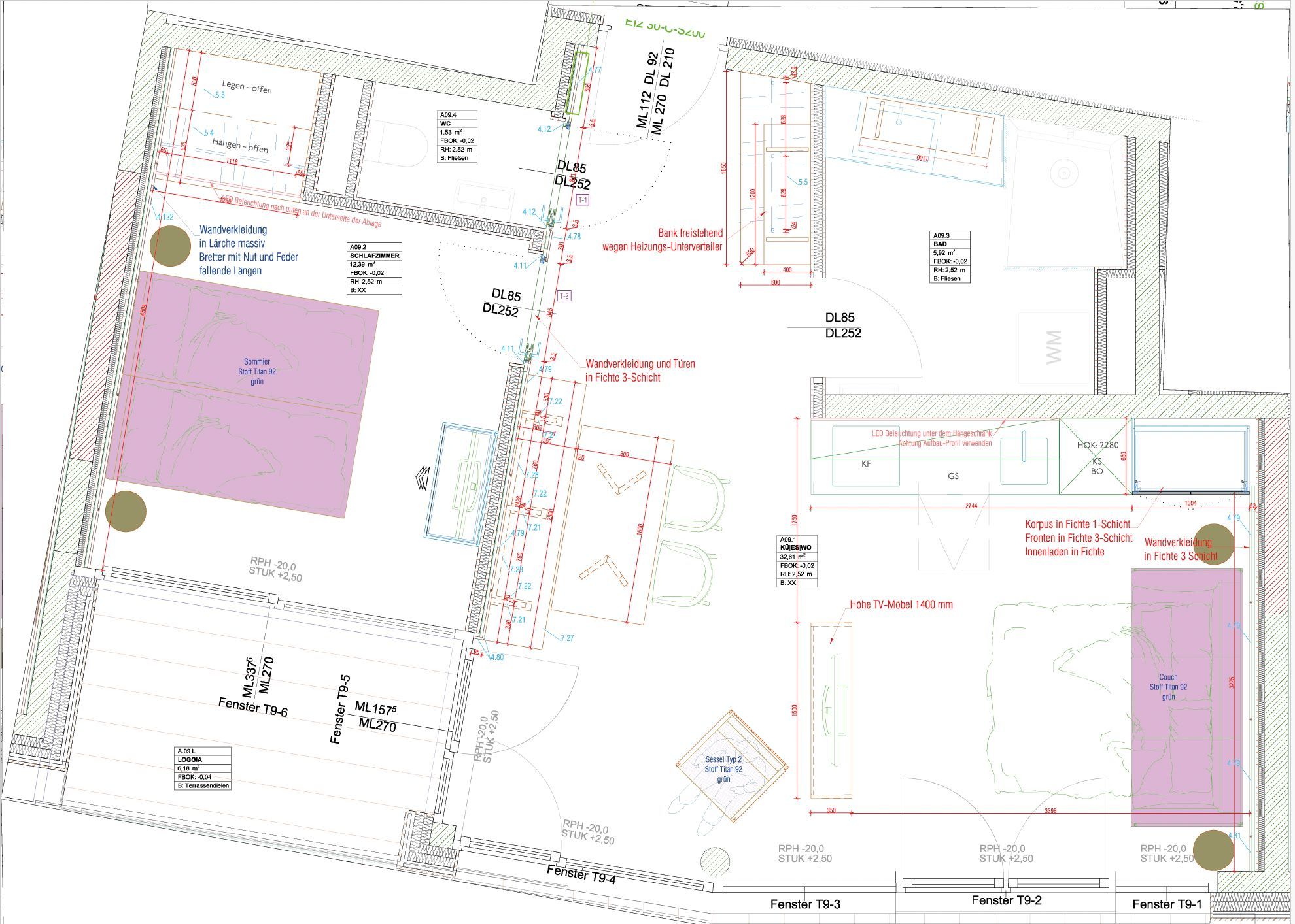 • Küche mit Mikrowelle, Bora Dunstabzug, Induktionsherd, Kühlschrank, Geschirrspüler, Filter Kaffeemaschine,