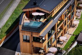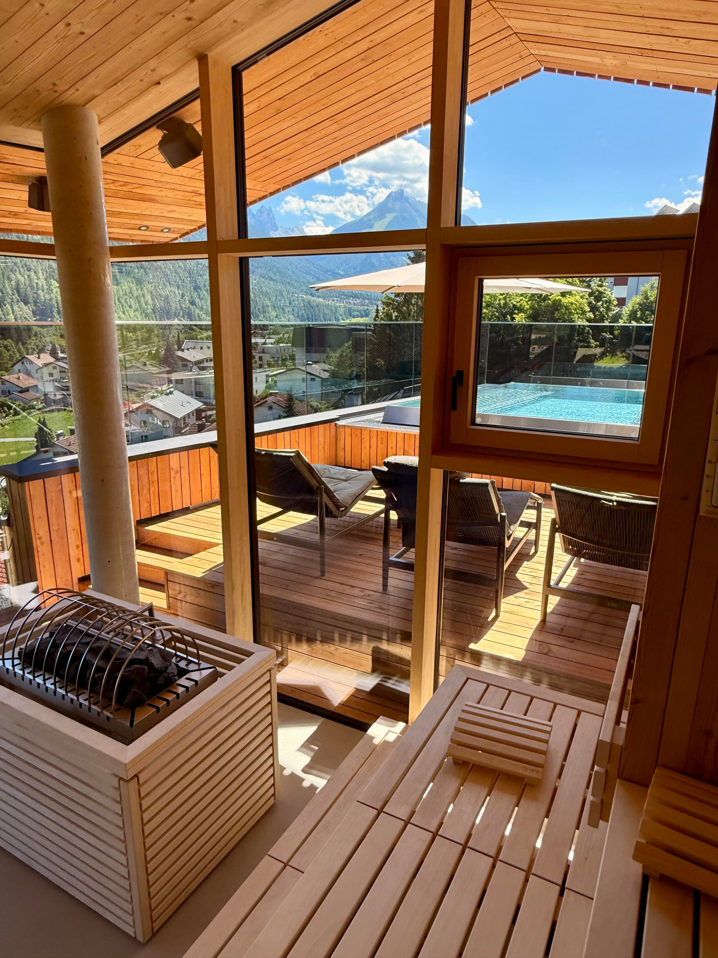 Entspannen Sie mit Blick auf die Natur in unserem LärchenSpa im Dachgeschoß mit Panoramasauna, Biosauna, Rooftoppool und Ruheraum.