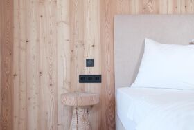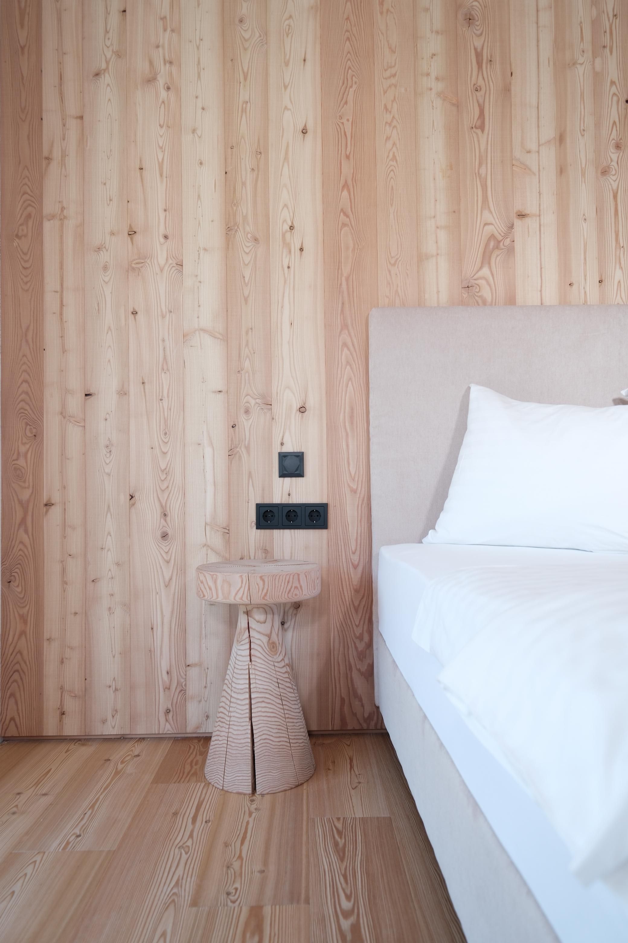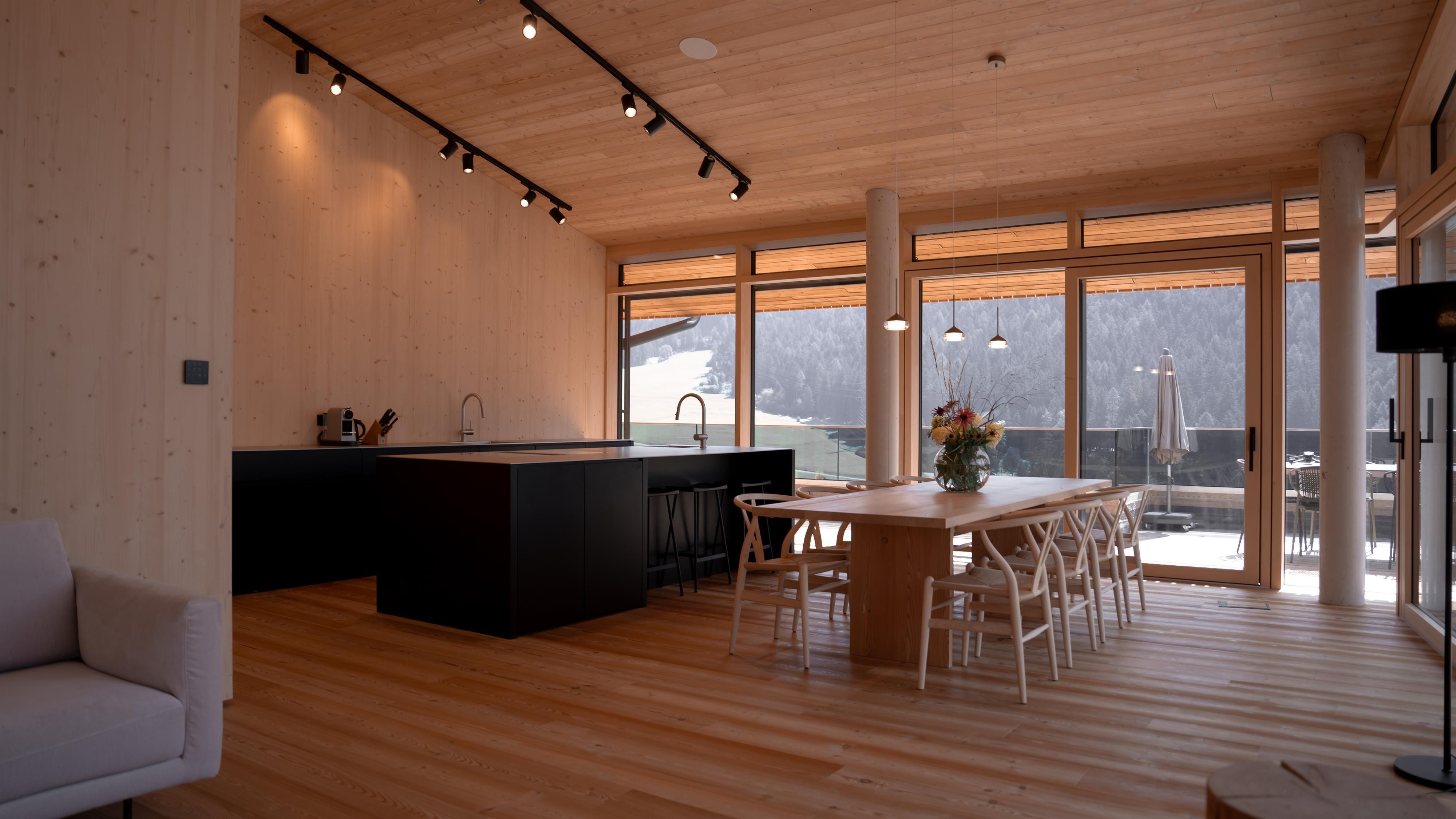 Ein Haus, gebaut aus Lärche aus dem familieneigenen Wald, angefangen mit der Fassade bis hin zu den Möbeln.