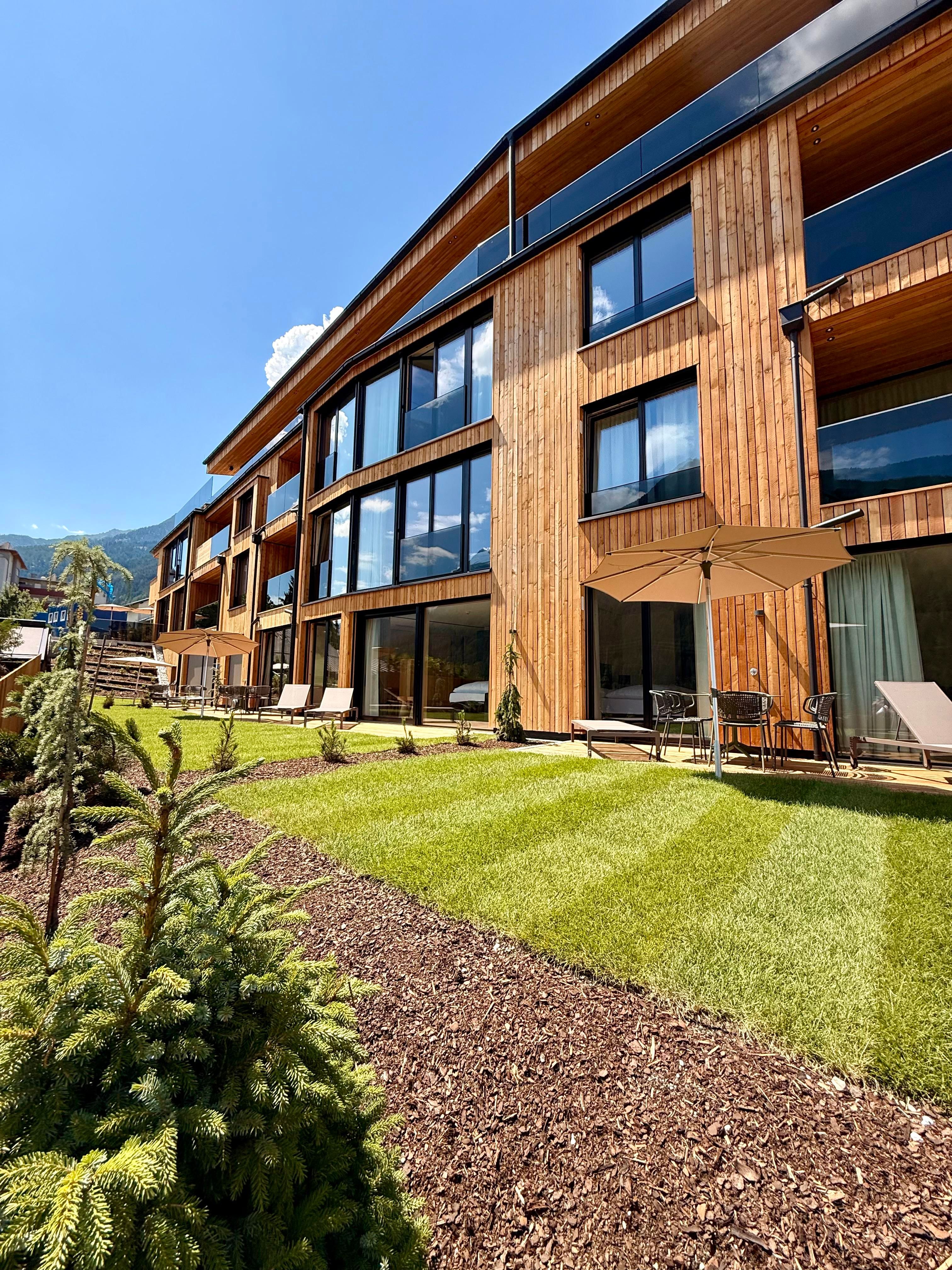 • Terrasse mit Garten mit Blick auf die Bergwelt
